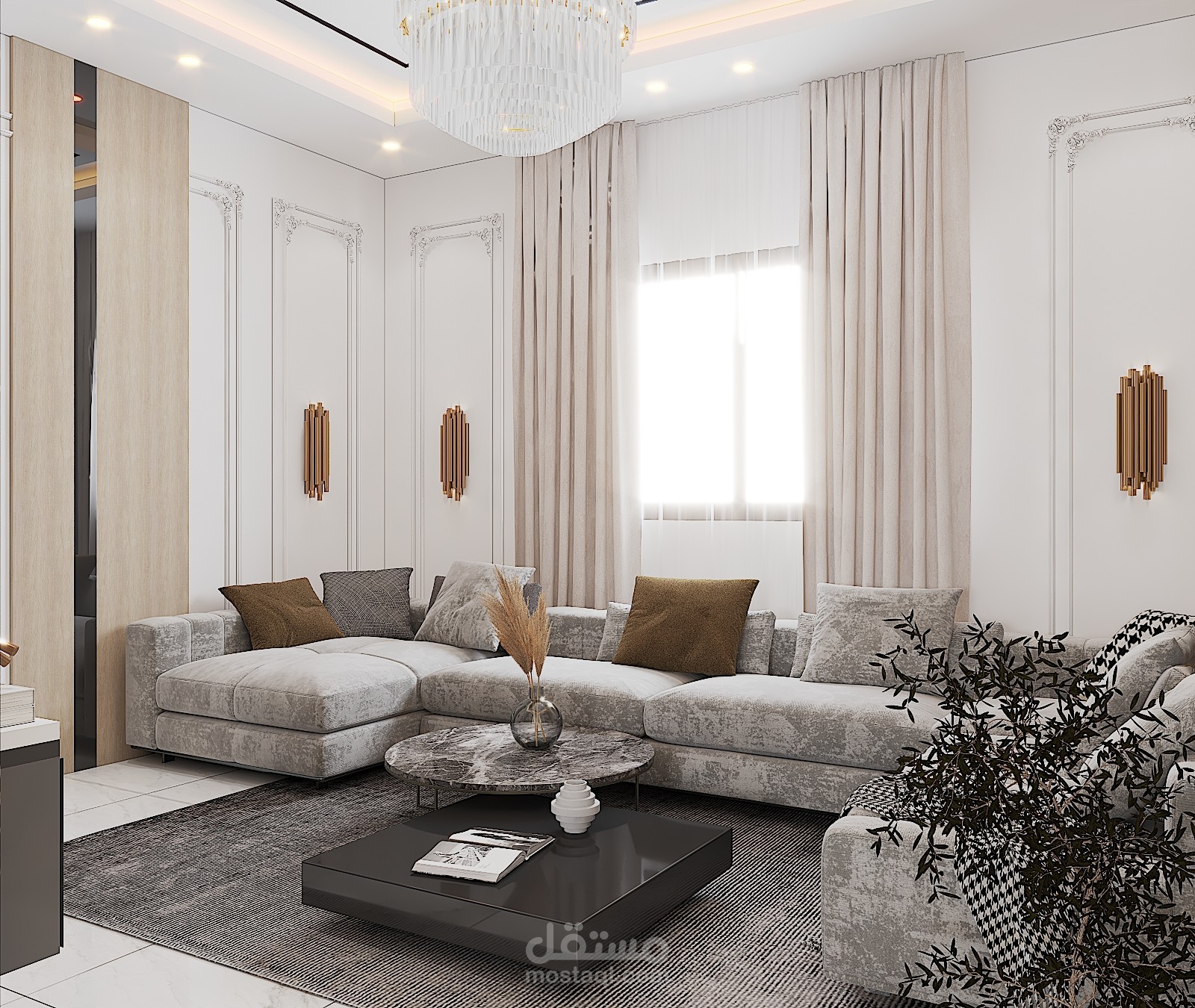 -قمت بتصميم غرفة المعيشة لاحد زبائني المميزين وتم الاتفاق حسب رغبته.
