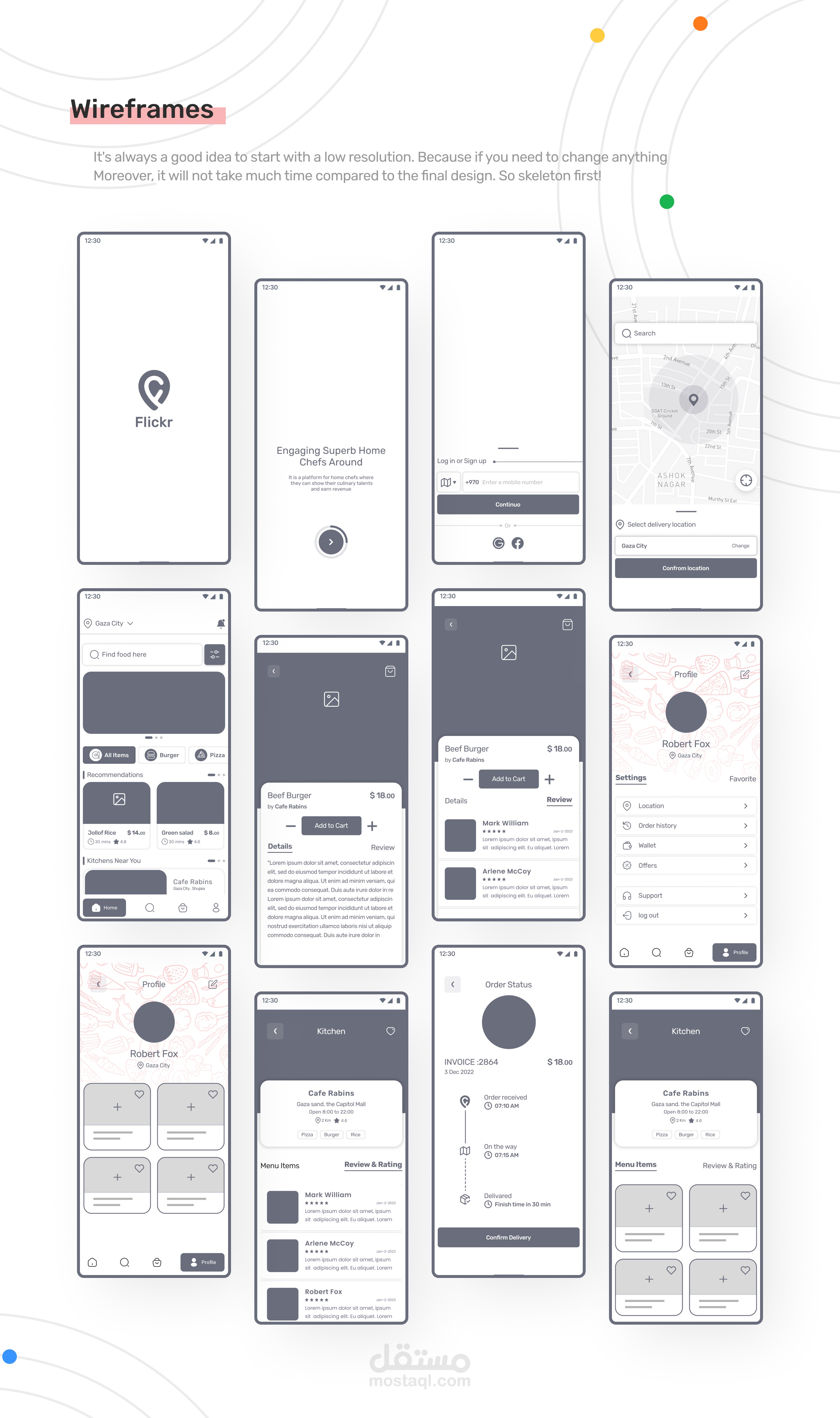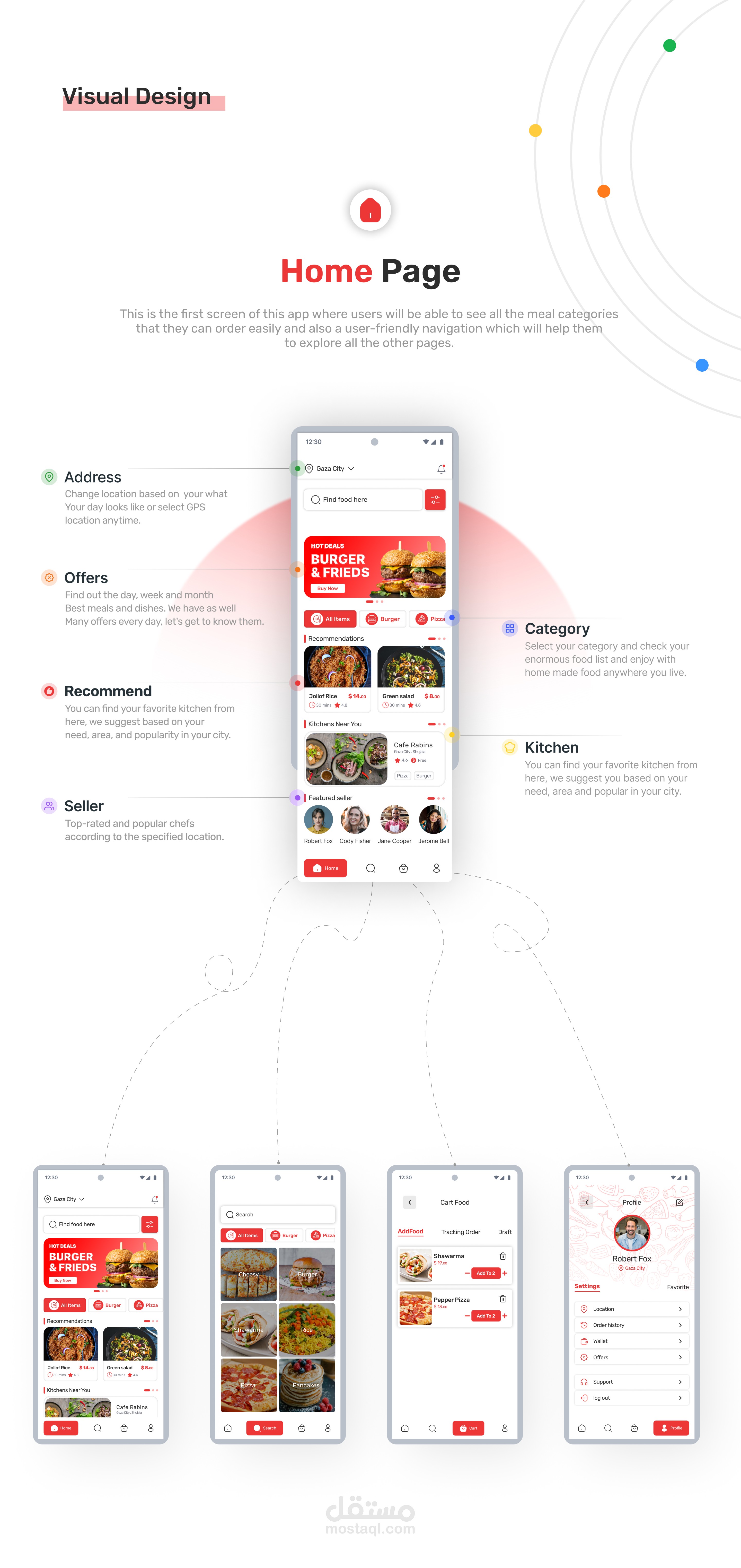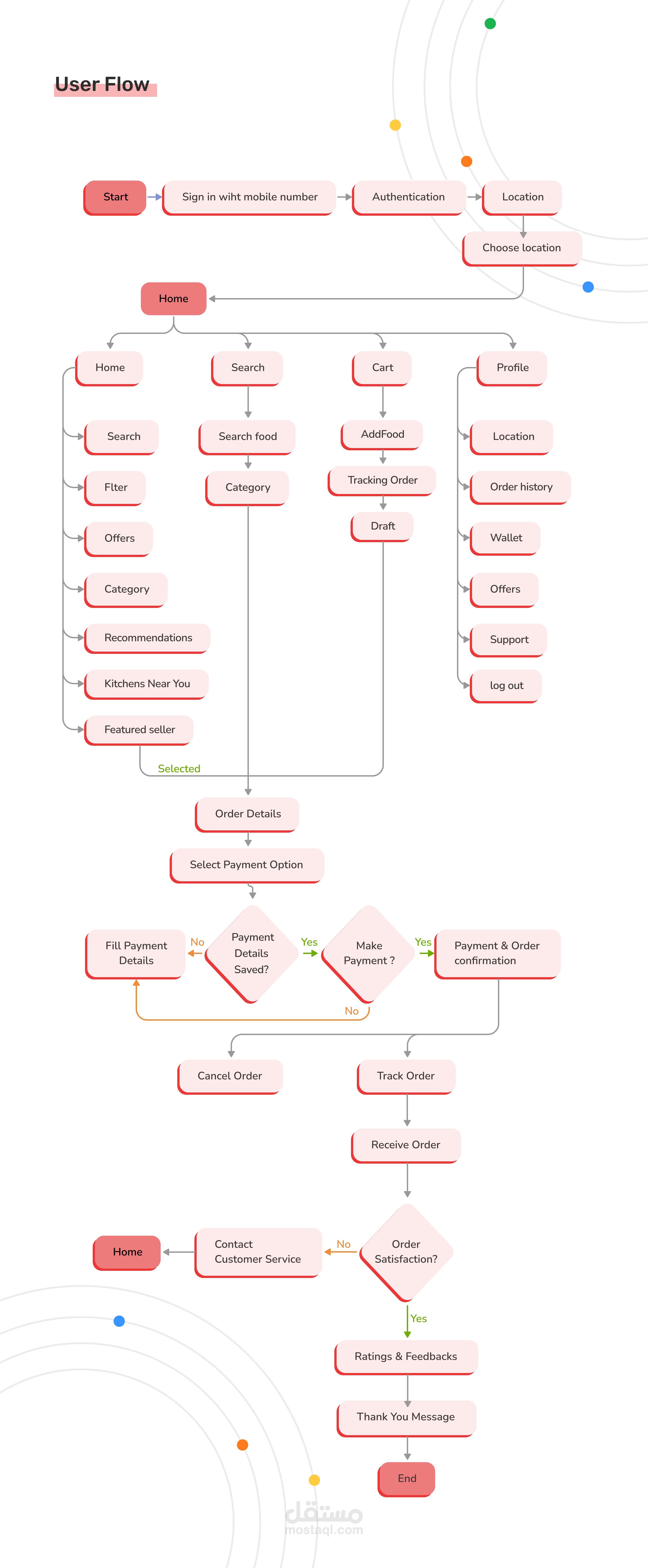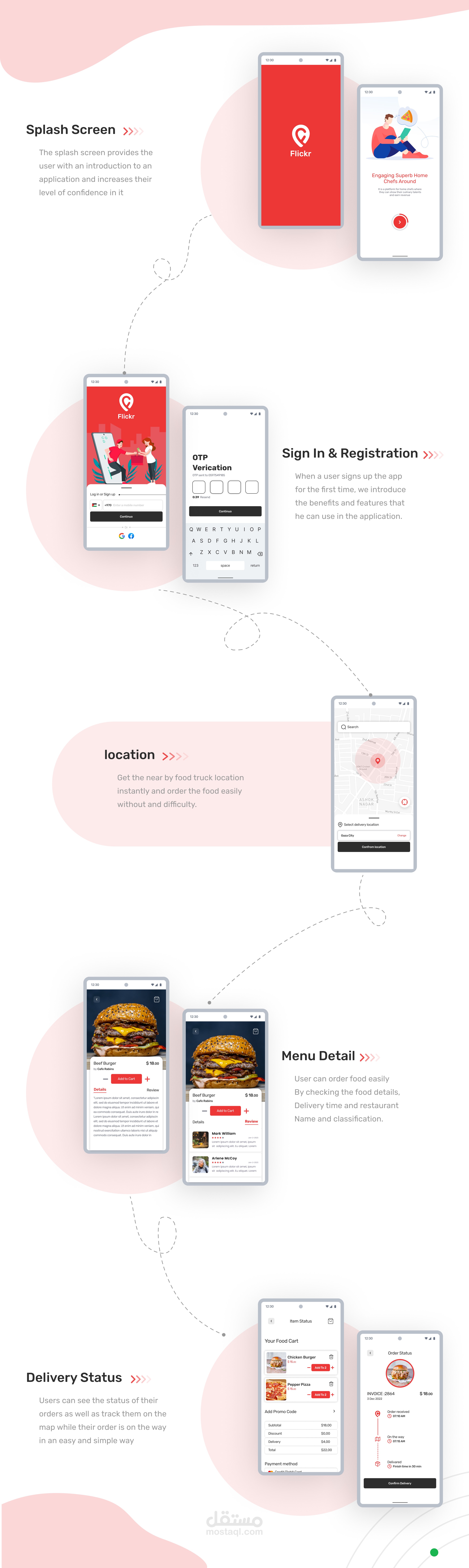 العمل عباره عن تطبيق للموبايل لشركة توصيل طلبات الطعام