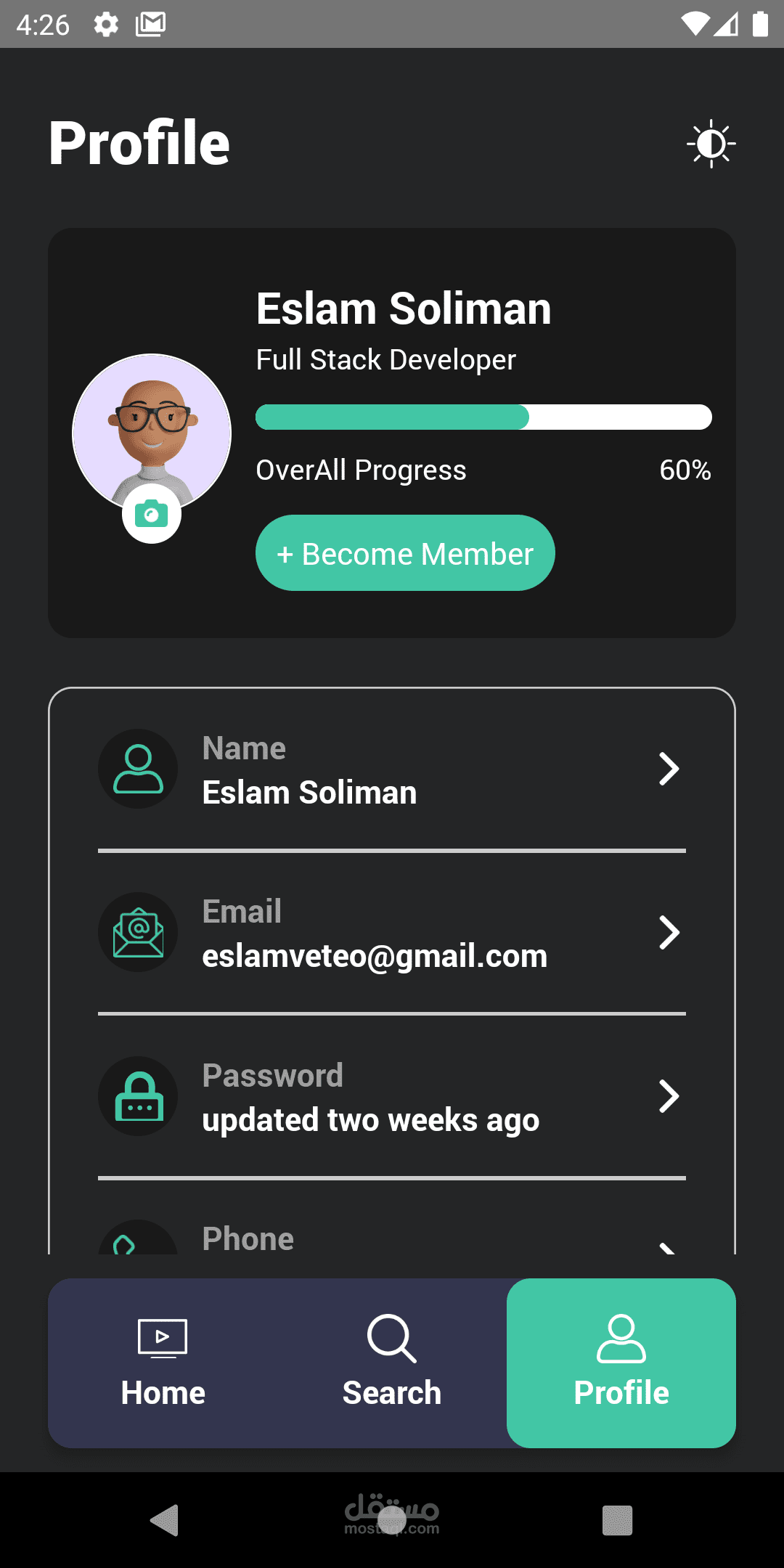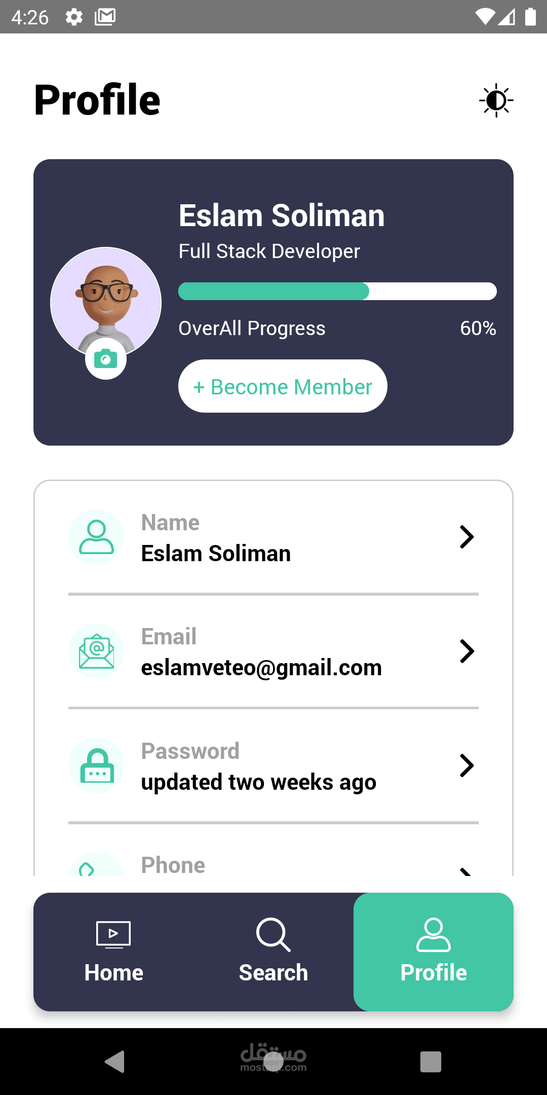 react native ui for e-learning app with alot of functionalities like dark mode,multilanguage and app protection