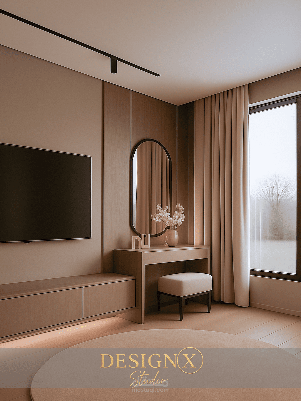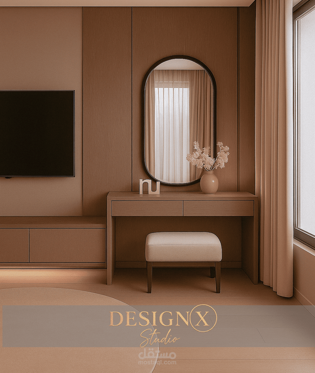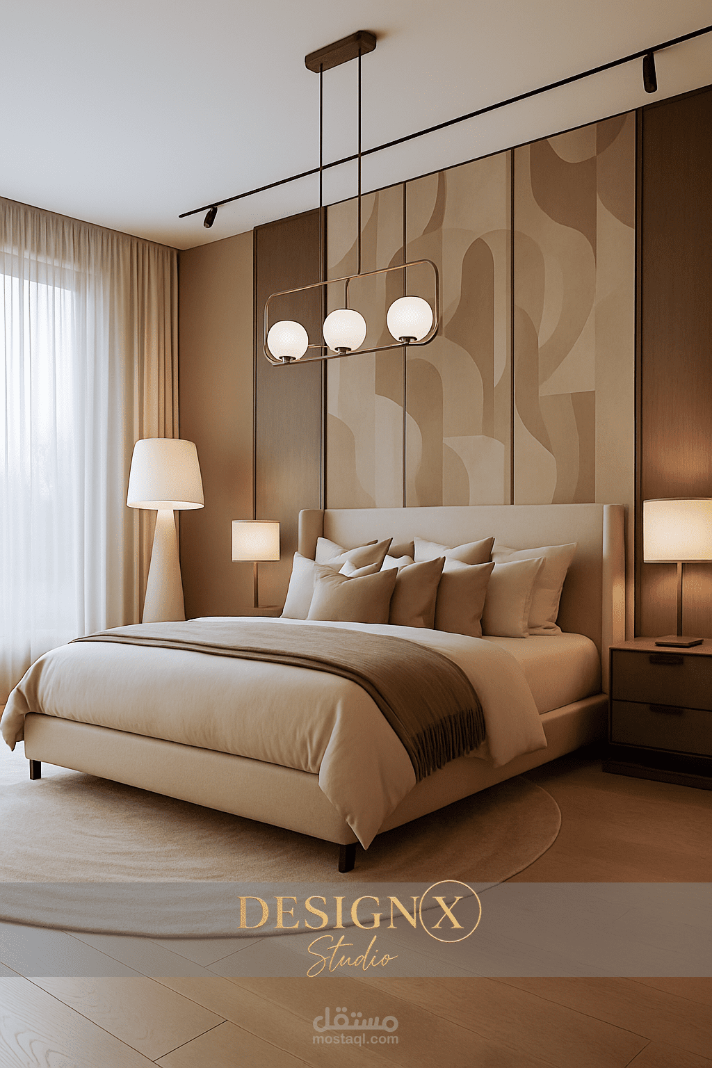 Modern Bedroom using warm Colors and fine materials