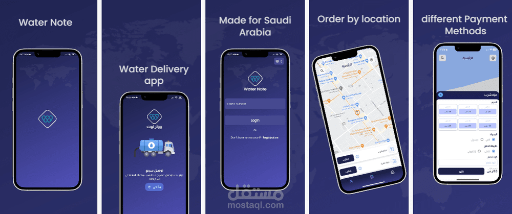 Water Note is a water delivery app made for Saudi Arabia citizens. The app has impressive features that allows customer to order by location also includes in-app purchase or pay on delivery. Scheduled orders are available in order to get the water on another date. In addition to in-app wallet that gives customer the freedom to store money on it.