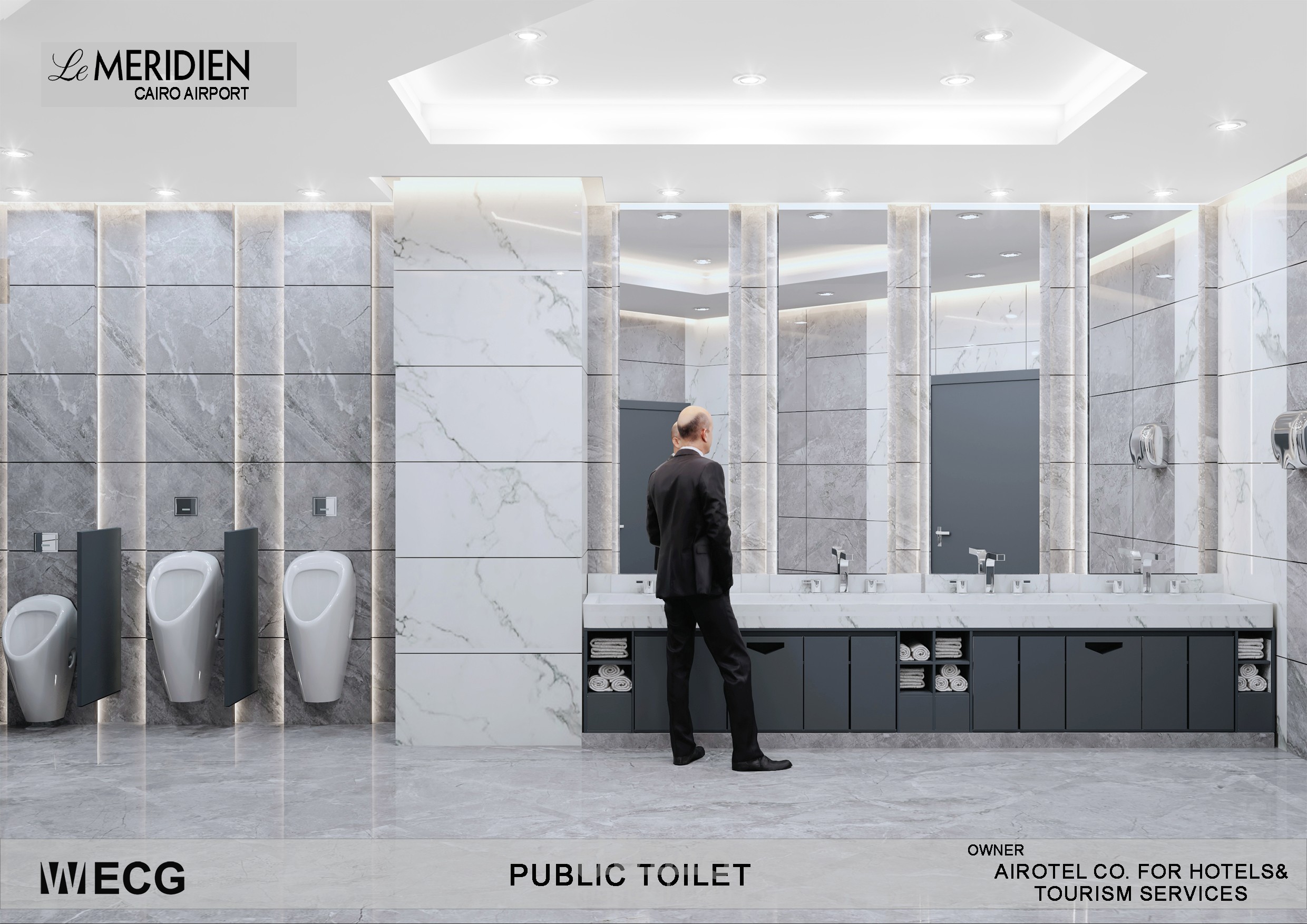 تصميم داخلي لحمامات مجمع قاعات Le Meridien Cairo Airport لصالح مكتب WECG