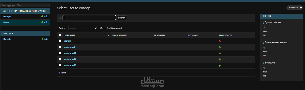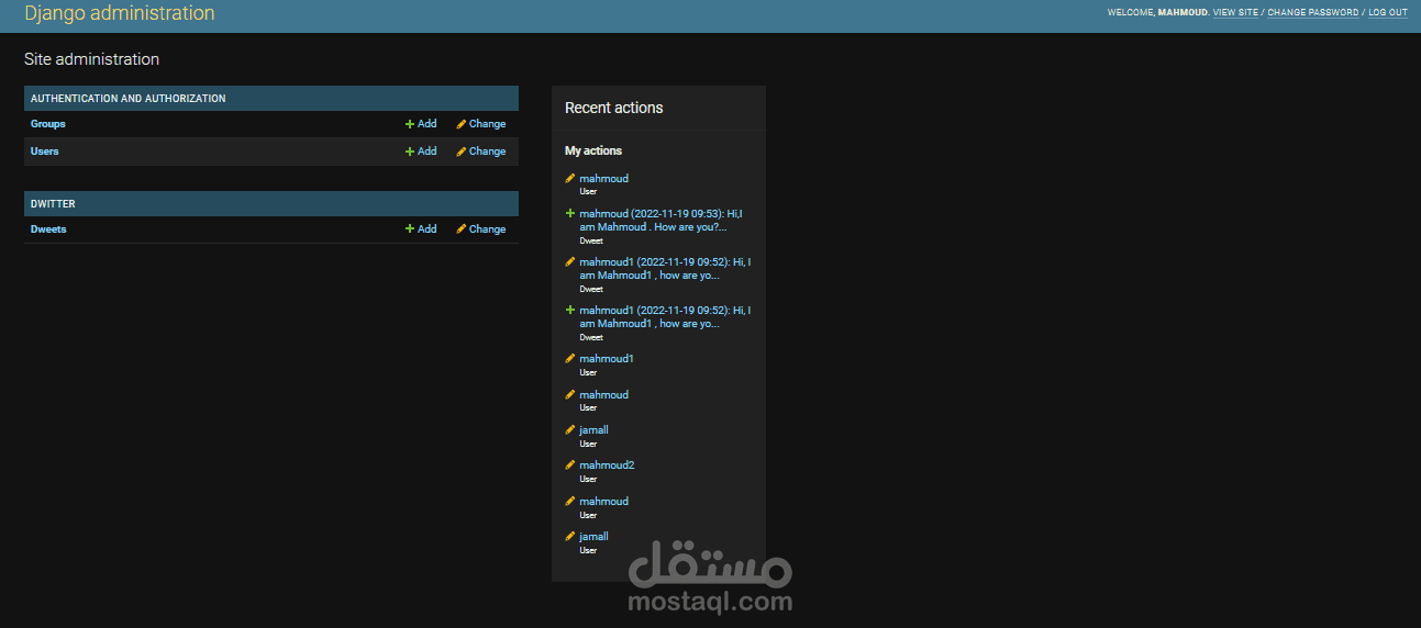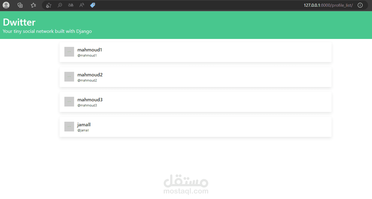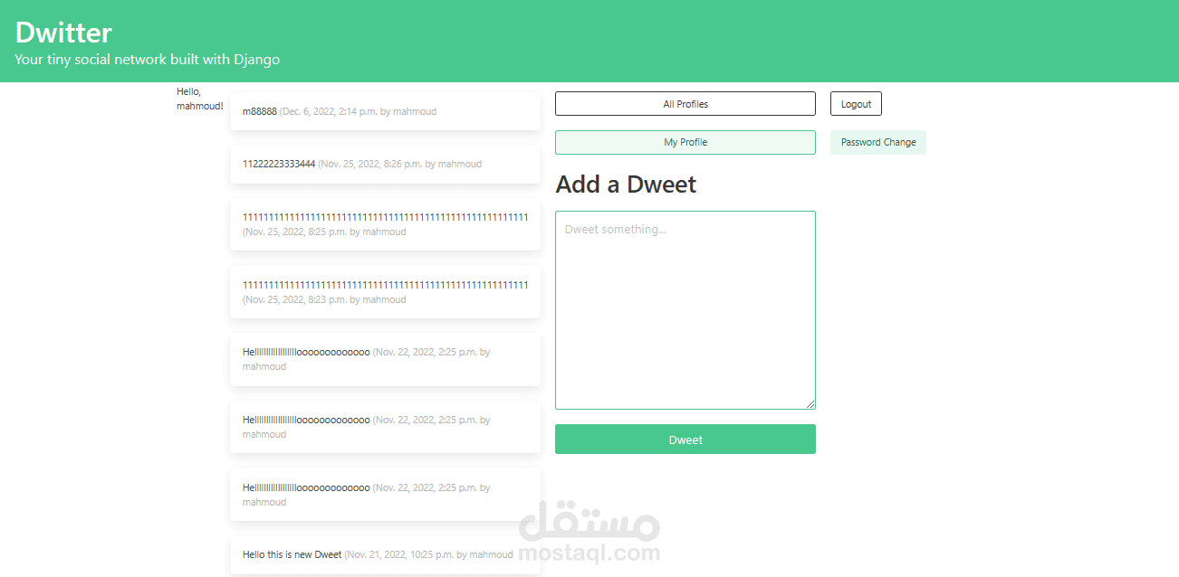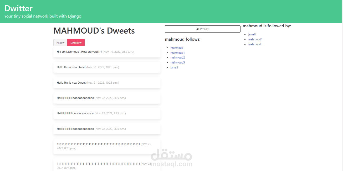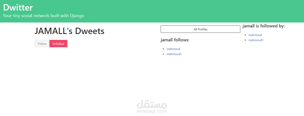 - Models: The main models used in this application are the User, Profile, and Dweet models.