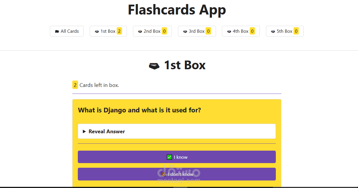 2) The Leitner system is implemented, which sorts flashcards into groups based on how well the learner knows each card.
