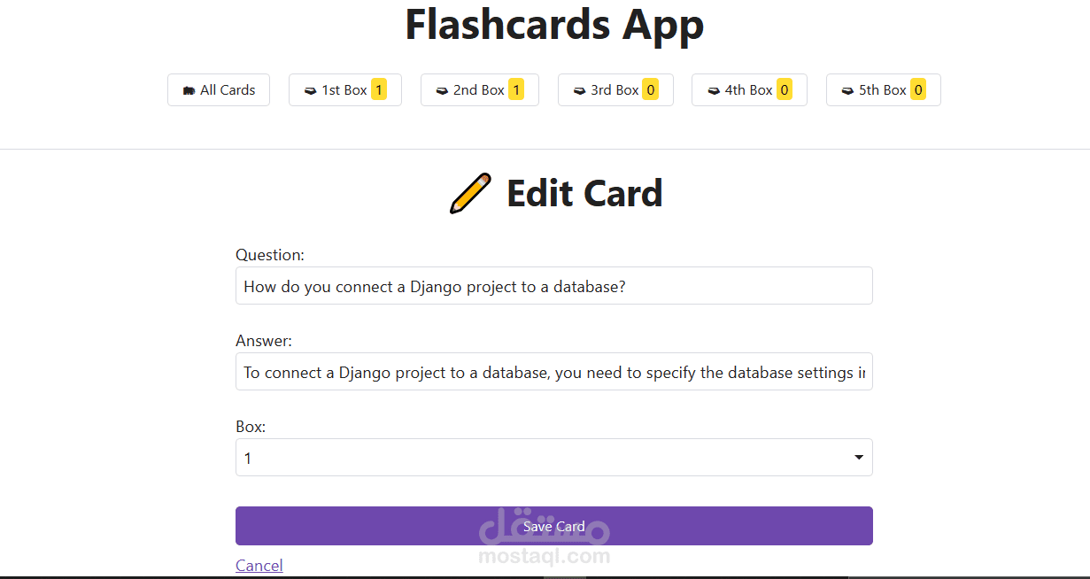 This flashcard app allows users to create and manage their own flashcards for memorizing new topics and learning new languages.