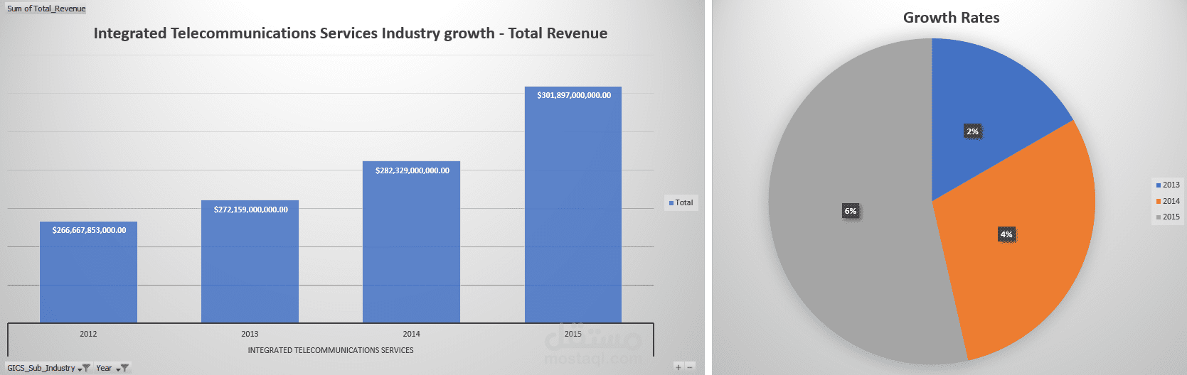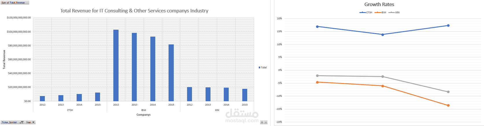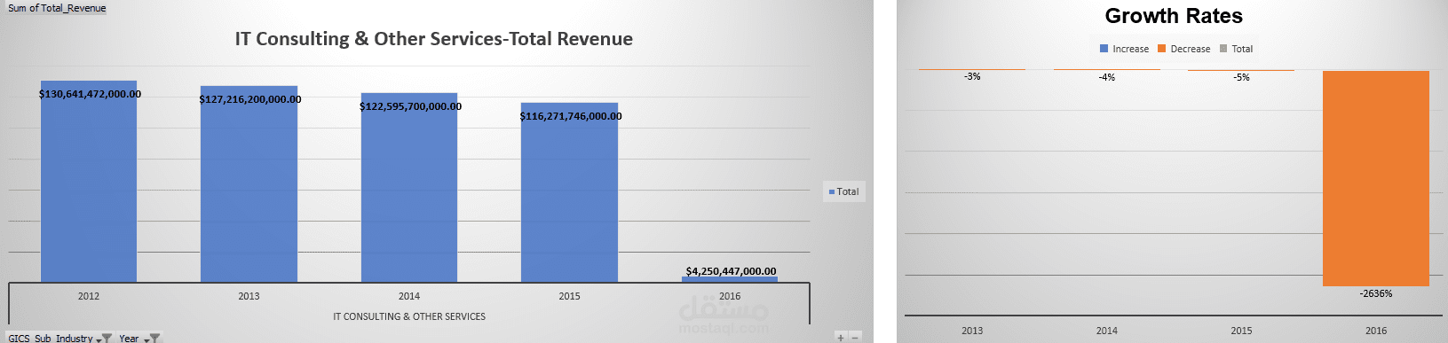 في هذا المشروع ، استخدمت الإحصائيات وبرامج جداول البيانات Excel لتحليل البيانات من أكثر من 500 شركة في بورصة نيويورك، وقمت بقياس معدل النمو لقطاع خدمات الاتصالات و قطاع تقنية المعلومات والخدمات ومعدلات نمو لبعض الشركات في هذا القطاع. وايضا اعداد نموذج مالي وتنبؤ للمقاييس المالية بناءً على ثلاثة سيناريوهات محتملة لثلاث شركات في قطاع استشارات تكنولوجيا المعلومات والخدمات الأخرى من مجموعة بيانات NYSE.
