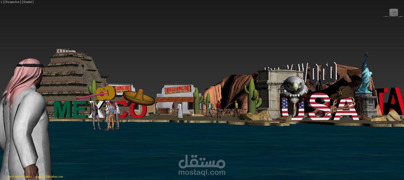 مشروع معالم الدول بمساحخ خارجية, يتضمن المشروع متاجر, مطاعم, حفلات تقليدية,ألعاب ومناطف ترفيهية