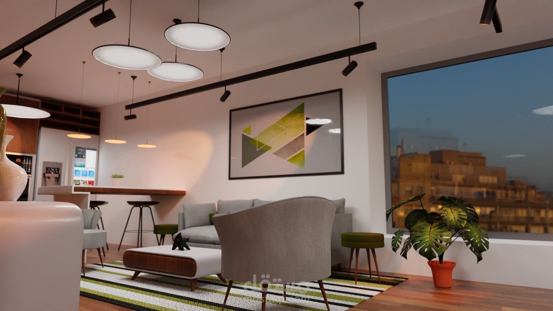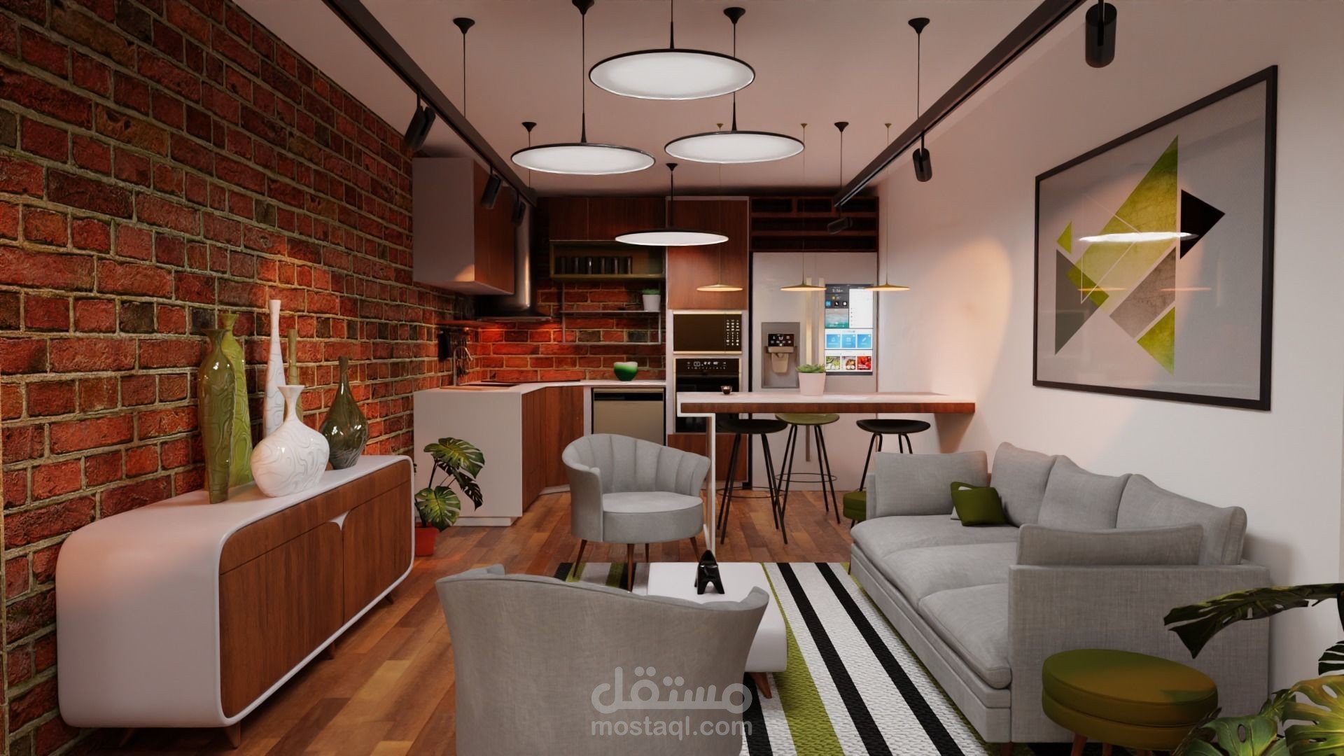 التصميم الداخلي لشقة صناعية. يحتوي المنزل المصمم على مطبخ وغرفة معيشة وممر بمساحة إجمالية تبلغ 35 مترًا مربعًا. يحتوي على عدد كبير من الكتل وأثاث مصمم خصيصًا ... كل قطعة داخل المشروع قابلة للتخصيص بالكامل في برنامج Blender