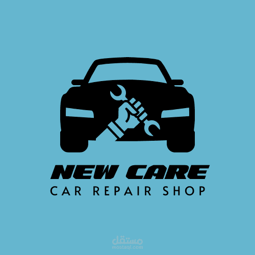 لوجو ورشة اصلاح سيارات بالازرق والاسود