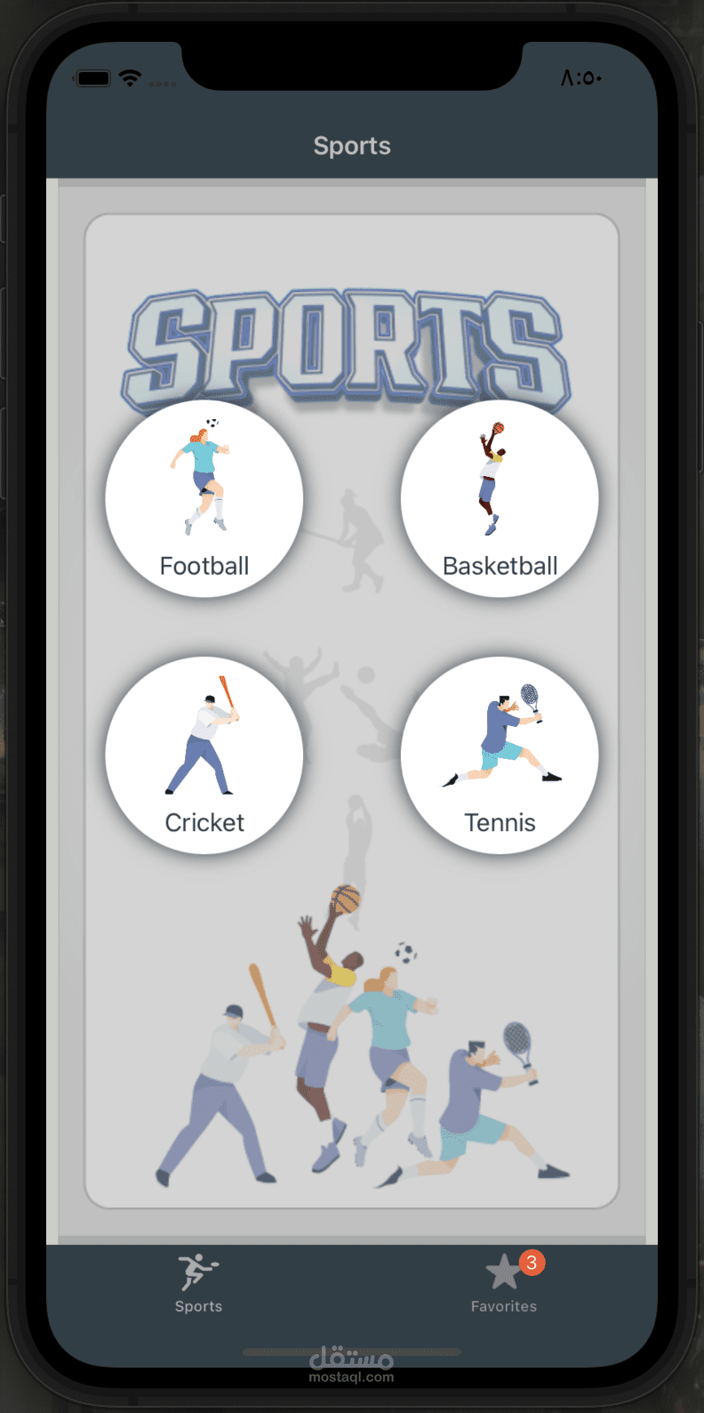 تطبيق رياضي معني بأربع رياضات (كرة القدم،التنس الارضي،كرة السلة , الكركيت) يتيح لك التطبيق الولوج اللي الرياضة من القائمة الرئيسية ليظهر لك كل الدوريات و البطولات المتاحة بتلتك الرياضة ، يوجد شريط للبحث لتبحث باسم البطولة المراد متابعة تفاصيلها , و تكون التفاصيل مقسمة اللي ثلاث أجزاء رئيسية : الاول المباريات التالية، الثاني معني بالنتائج السابقة اما الثالث فيحتوي علي الفرق المشاركة بتلك البطولة و عند الضغط علي اخد الفرق ينقلك اللي صفحة اخري تحتوي علي تفاصيل عن جميع اعضاء الفريق من اسماء ، ارقام ، و اعمار .. الخ .