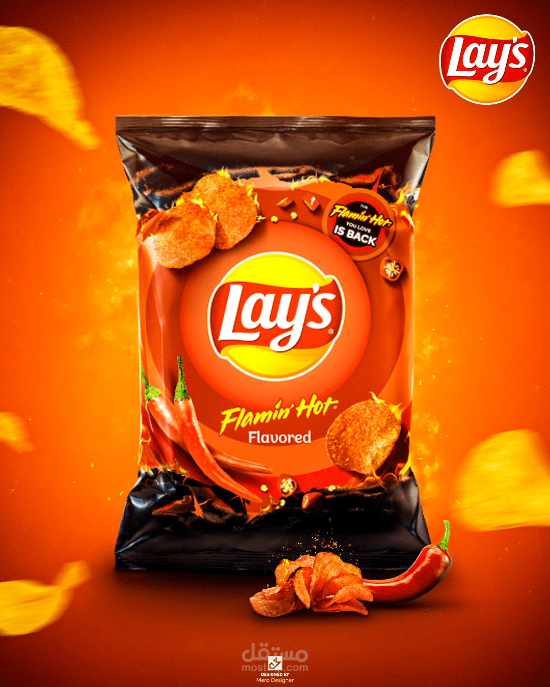 I liked the new taste of Lay's company, so I decided to design a poster for the new chips, the idea was to convey to the viewer that the chips taste hot and fiery, so I made the color of the design reddish-orange to suggest hotness, and I put red pepper and some chips, this design took me 3 hours from work.