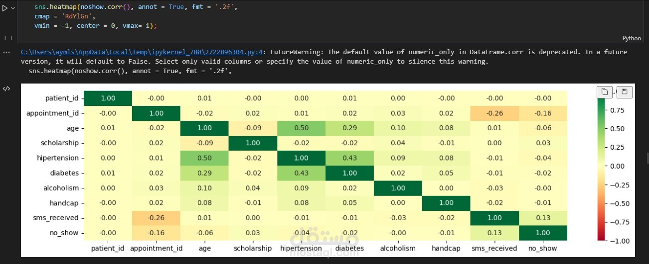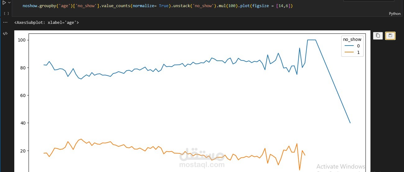 تم استخدام بايثون ومكتباته في أداء هذا التحليل للبيانات واستنتاج التزام الفئة المتقدمة في العمر بحضور مواعيدهم مع الاطباء