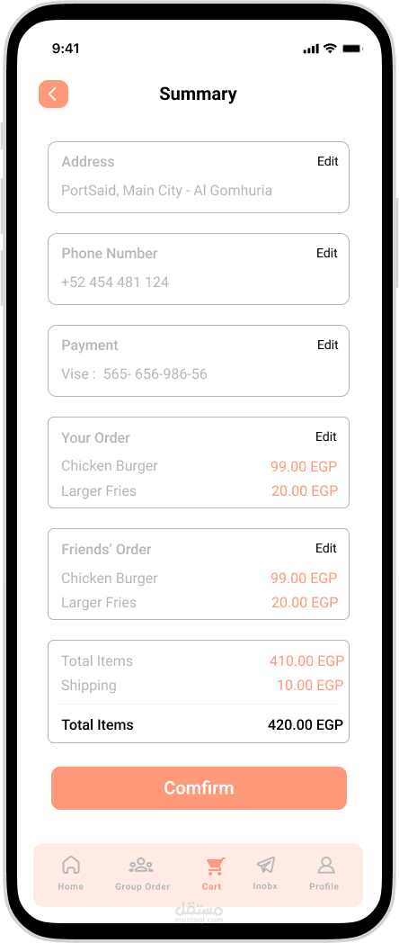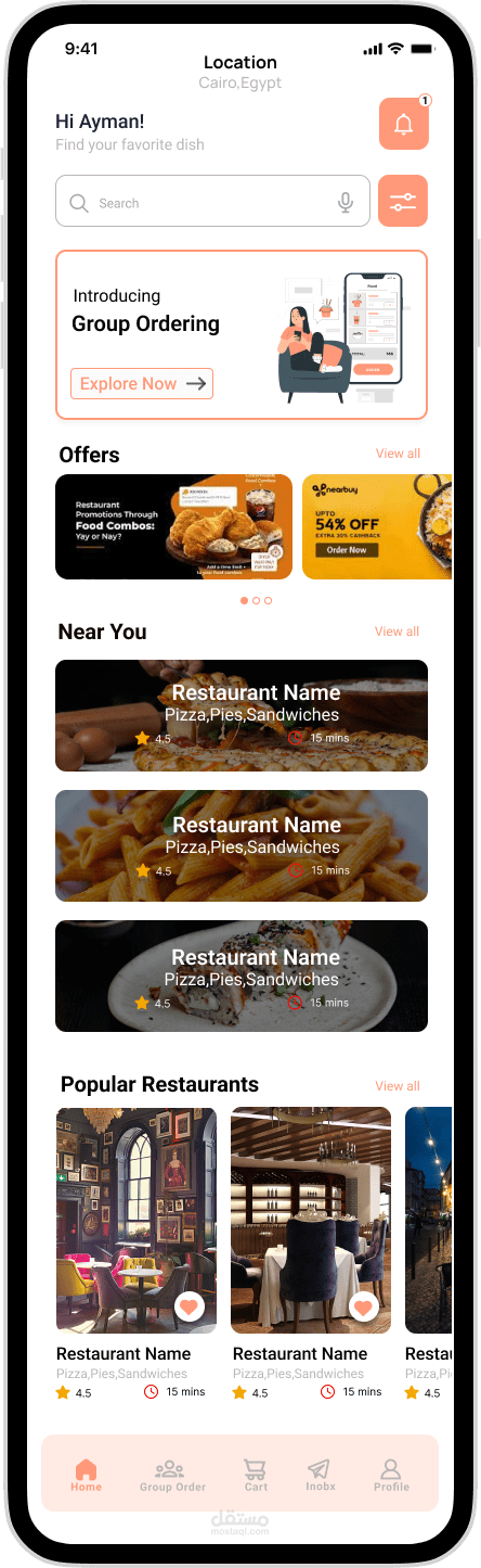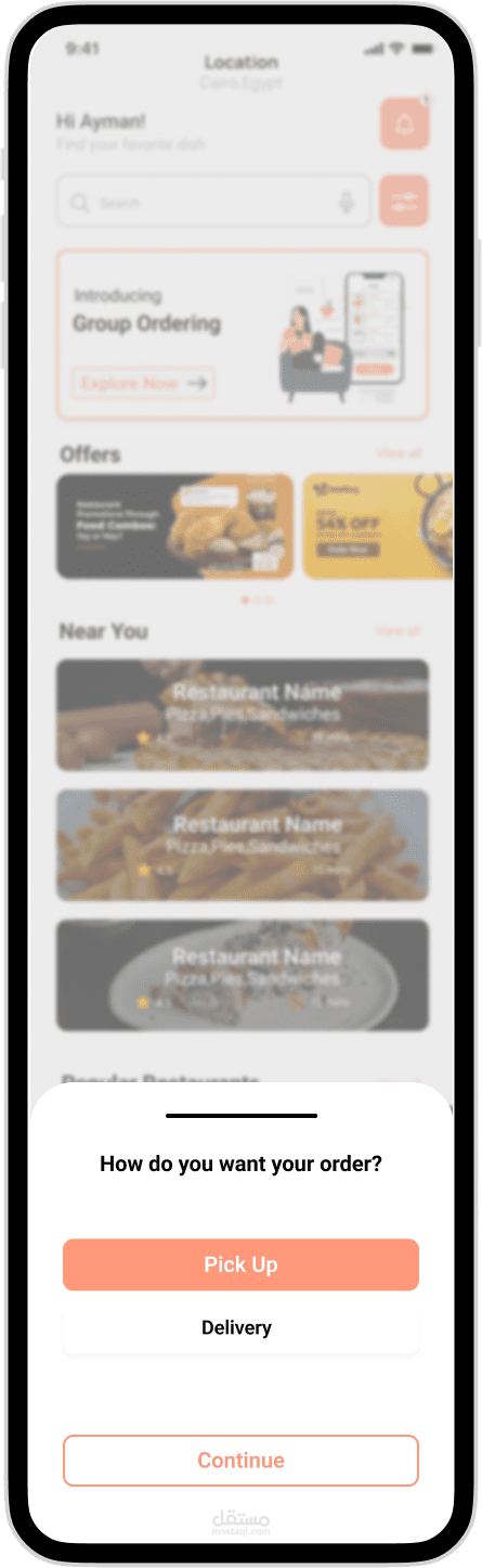 انا قمت باستلام طلبات الصاحب العمل وهو عمل تطبيق يعرض فيه جميع انواع اللمطاعم للتسوق التجاري وطلب اوردرات ويوجد به ميزة جديدة عن جميع التطبيقات وهي طلب الاكل بشكل جماعي او عائلي وبعد ذلك فهمت المشكلة وقمت بالبحث لايجاد الحل المناسب وذلك عن طريق تحليل المنافسين للفهم ماهي جميع المميزات وماهي العيوب لديهم ووبحث عن نقاط قوة وضعف المنافسين والعمل عليها لتكون في التطبيق بشل أفضل ومنطور وترندي وبعد ذلك قمت بعمل مقابلات مع المستخدمين وفهم احتياجاتهم وطلباتهم بشكل دقيق ومتامل للعمل عليها ومن ثم وضع تدفق المستخدم والعمل علي اسكتشات لاختبارها من المستخدمين والتأكدمن انها قابلة للإستخدام وذلك عن طريق اختبار أ\ب وبذل نكون خرجنا بأفضل خيار لدينا والعمل عليه ليكون تصميم متكامل بالالوان والاشكال والصور وعمل له بروتوتايب ليكةن متحرك ويمكن التفاعل معه لفهم جميع الاكشن الموجودة .
