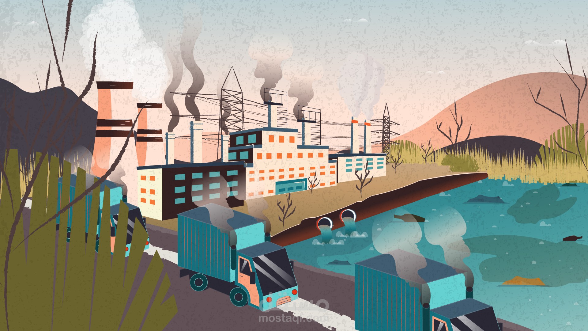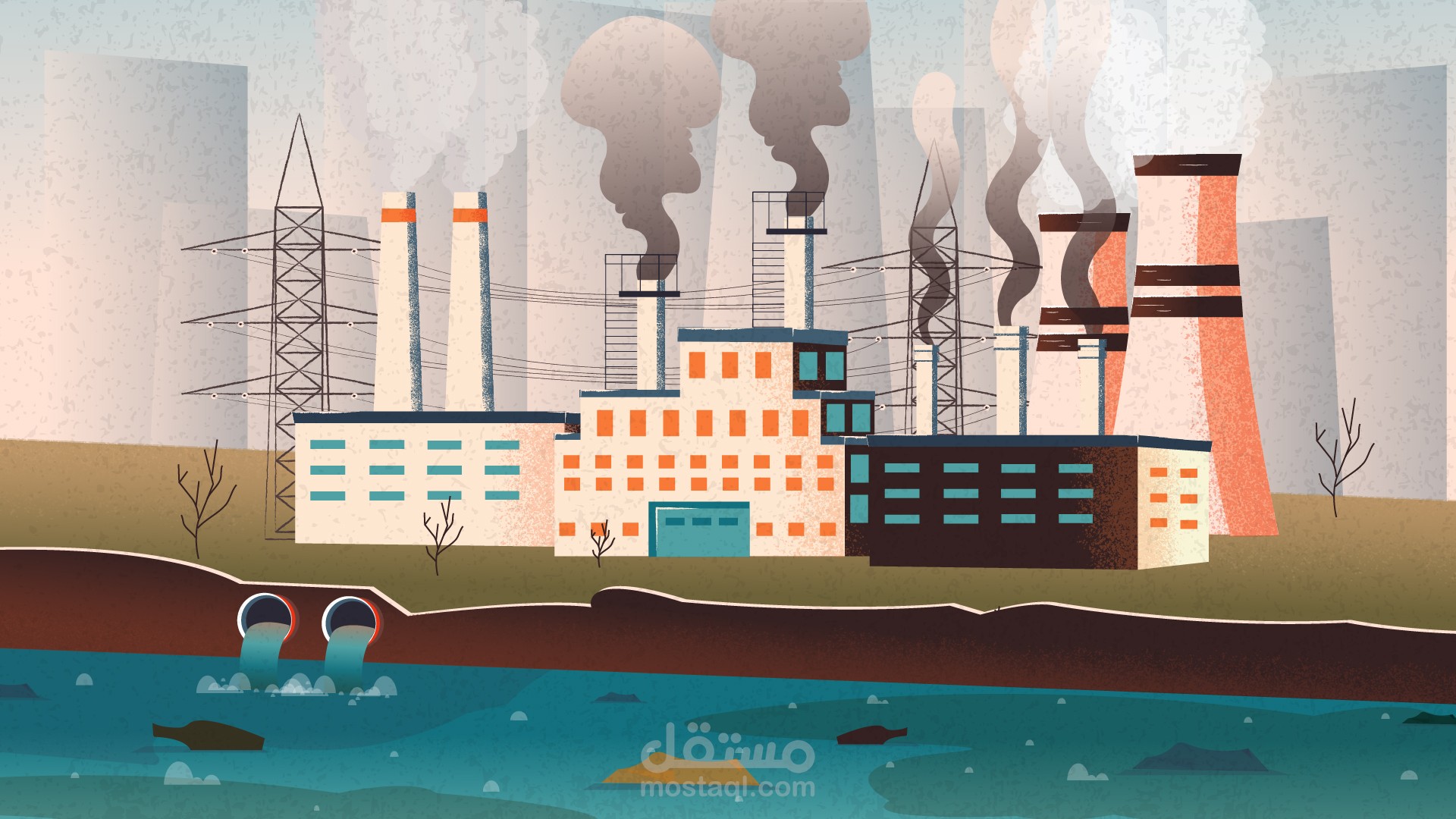 مشروع بيوضح مشكله التلوث الصناعة وأثره على الحياة بشكل عام.