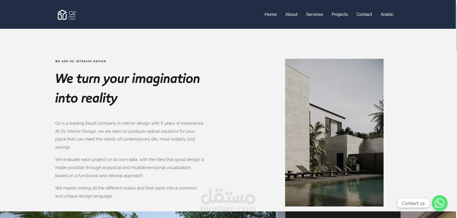 OZ is an interior design company located in Saudi Arabia and they were in the field for the past 6 years so they needed a website that represent there creative talents and projects