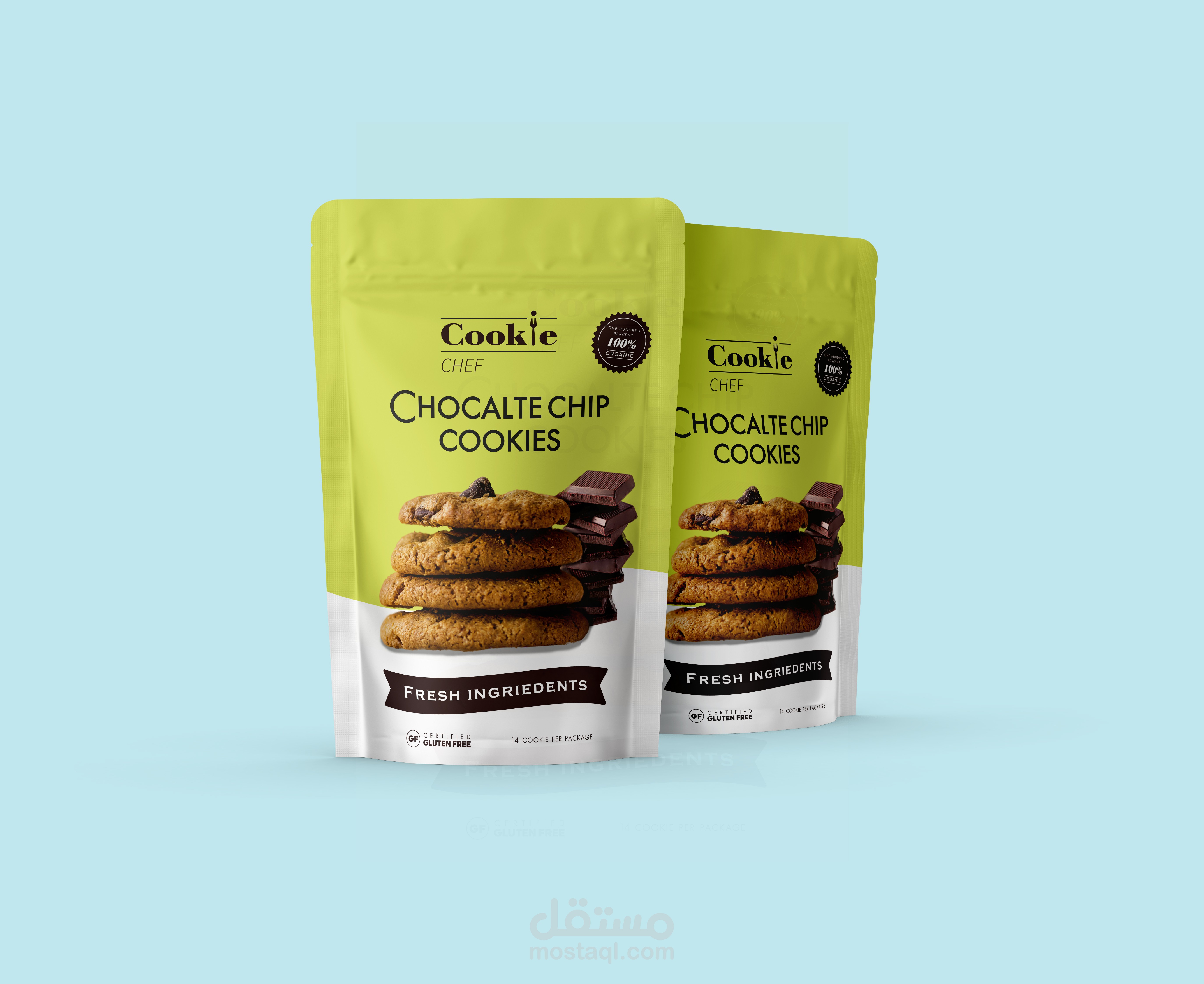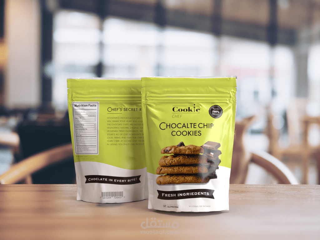 نقدم لكم Cookie Chef ، أحدث وألذ سناك في السوق! من المؤكد أن تصميم العبوة الخاص بي سيجعل فمك يسيل. تصميمً فريدً ولافت للنظر يبرز على أرفف المتاجر. ستجذب الألوان النابضة بالحياة والرسومات الجريئة العملاء من جميع أنحاء العالم. الكيس نفسه مصنوع من مواد عالية الجودة ، مما يضمن بقاء الكوكيز طازجة ولذيذة لفترة أطول. ستجد داخل الحقيبة مجموعة متنوعة من النكهات ، من رقائق الشوكولاتة الكلاسيكية إلى خيارات أكثر ميلًا إلى المغامرة مثل الكراميل المملح. مع Cookie Chef ، يمكنك الاستمتاع بوجبة خفيفة لذيذة في أي وقت تريده!