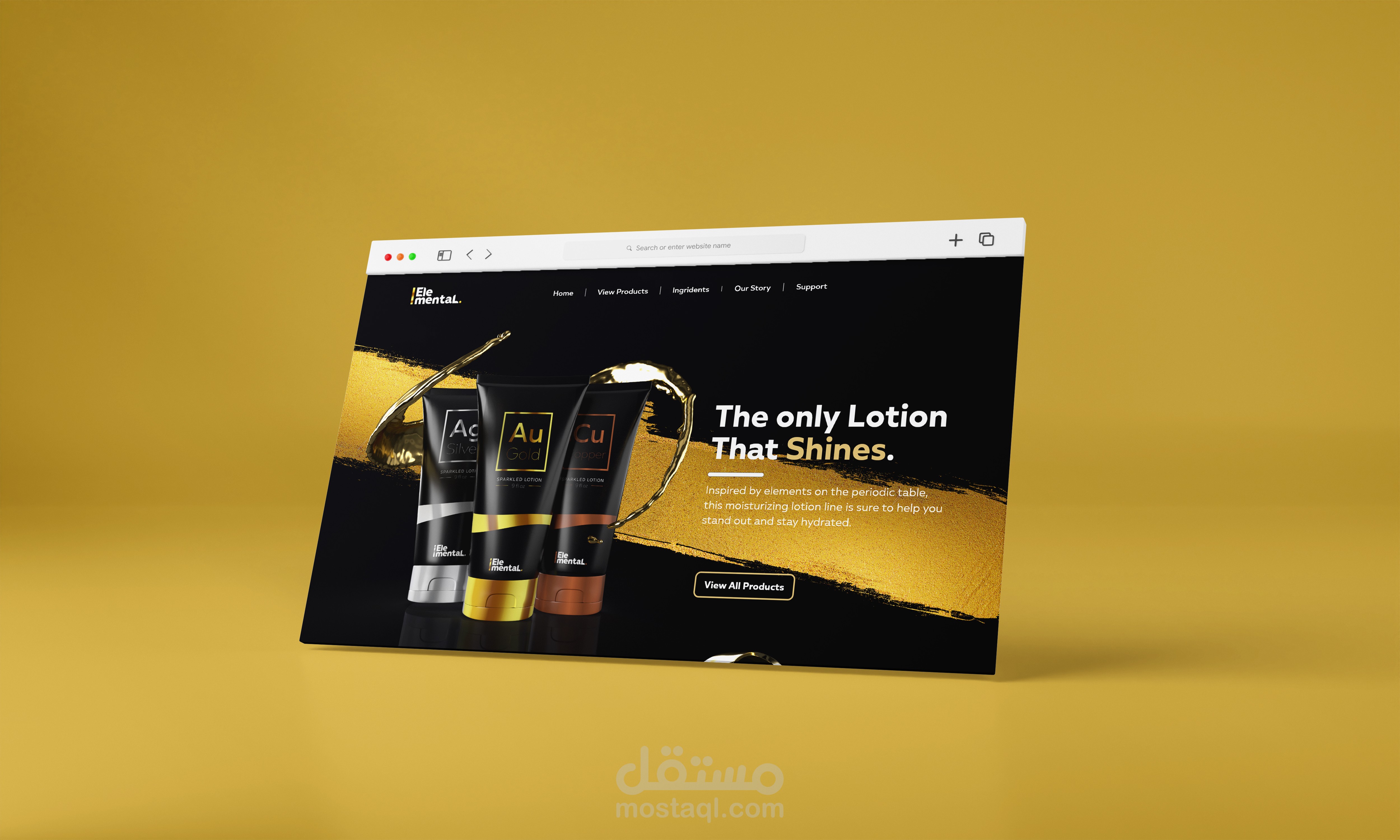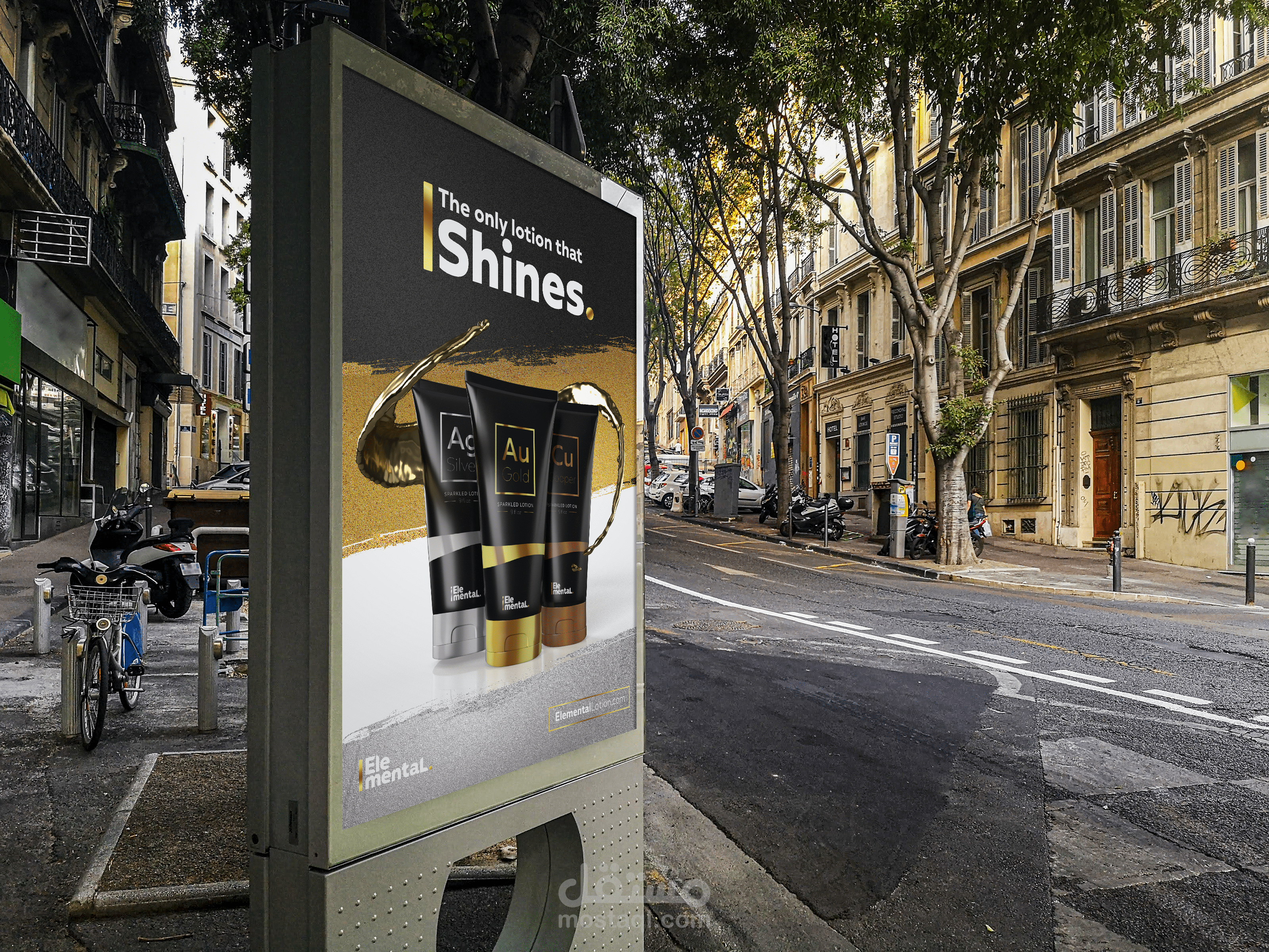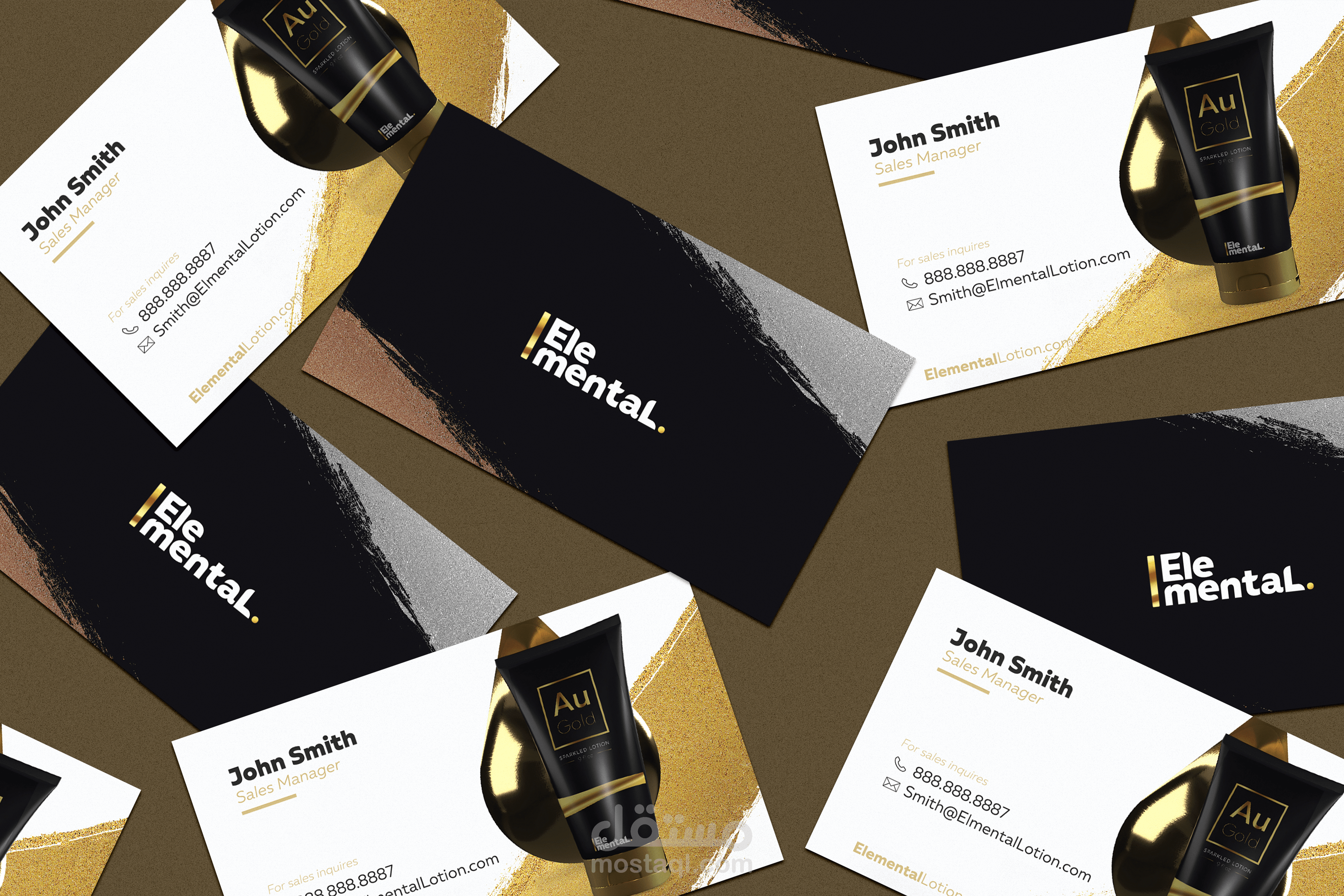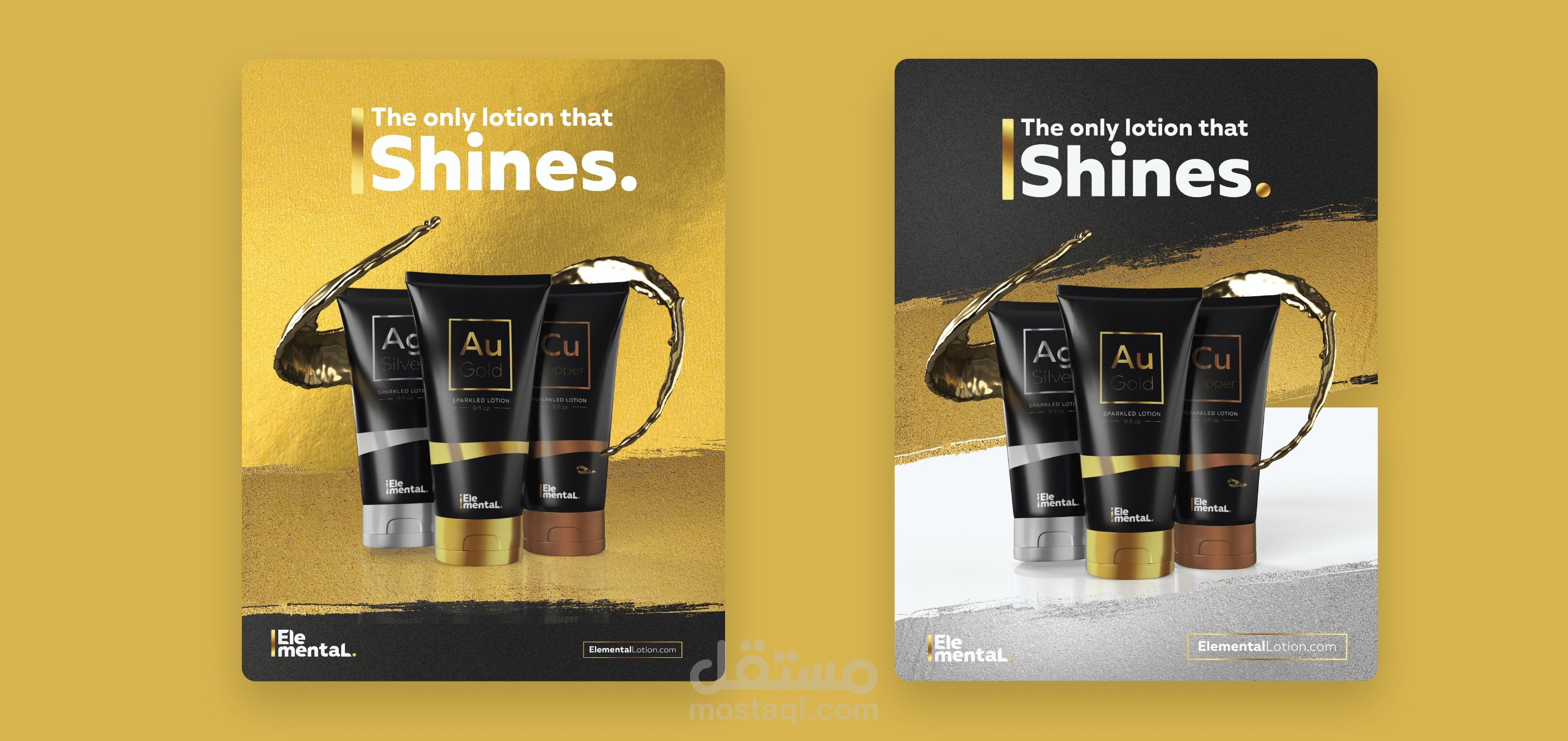 يعتمد مفهوم Logo لـ Elemental ، وهي علامة تجارية لمستحضرات التجميل الراقية ، على فكرة ثلاثة عناصر من الطبيعة: الذهب والفضة والبرونز.