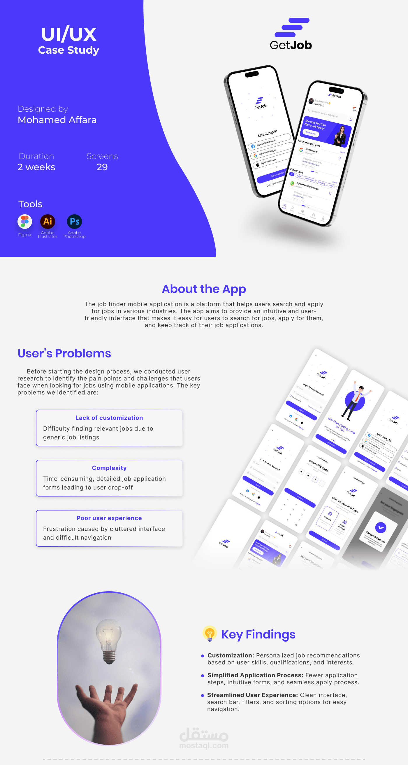 Before starting the design process, we conducted user research to identify the pain points and challenges that users face when looking for jobs using mobile applications. The key problems we identified are: