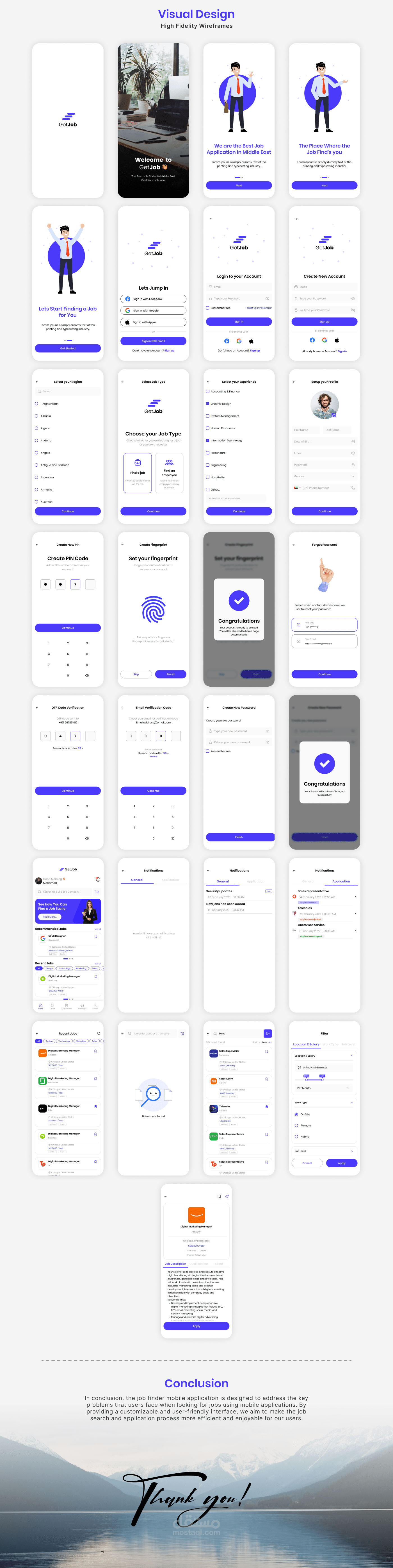 The job finder mobile application is a platform that helps users search and apply for jobs in various industries. The app aims to provide an intuitive and user-friendly interface that makes it easy for users to search for jobs, apply for them, and keep track of their job applications.