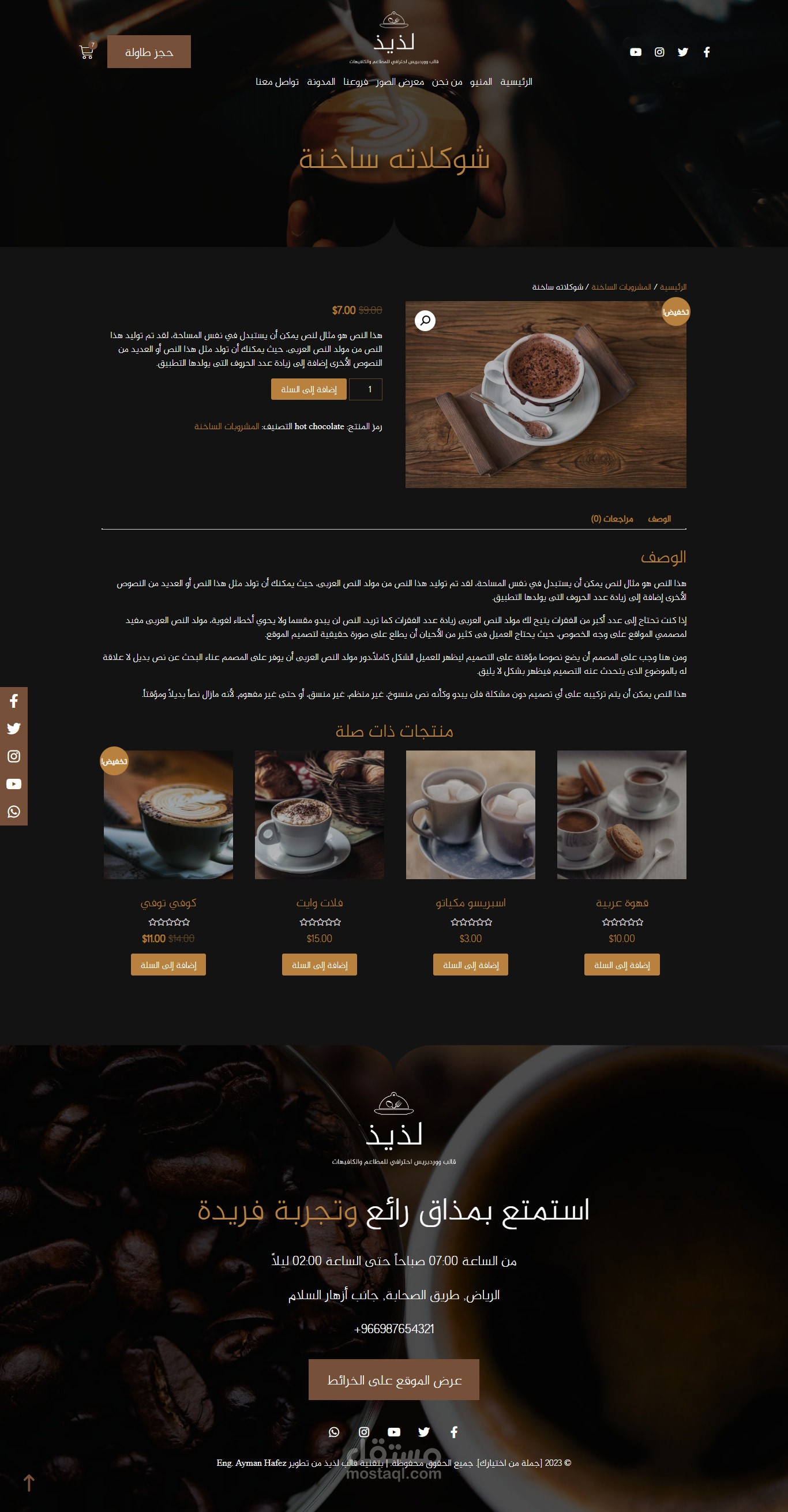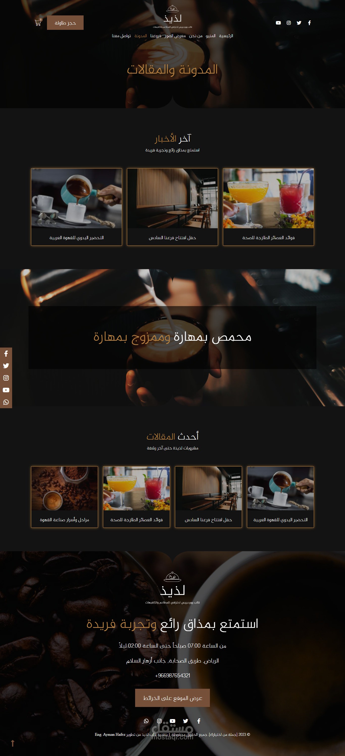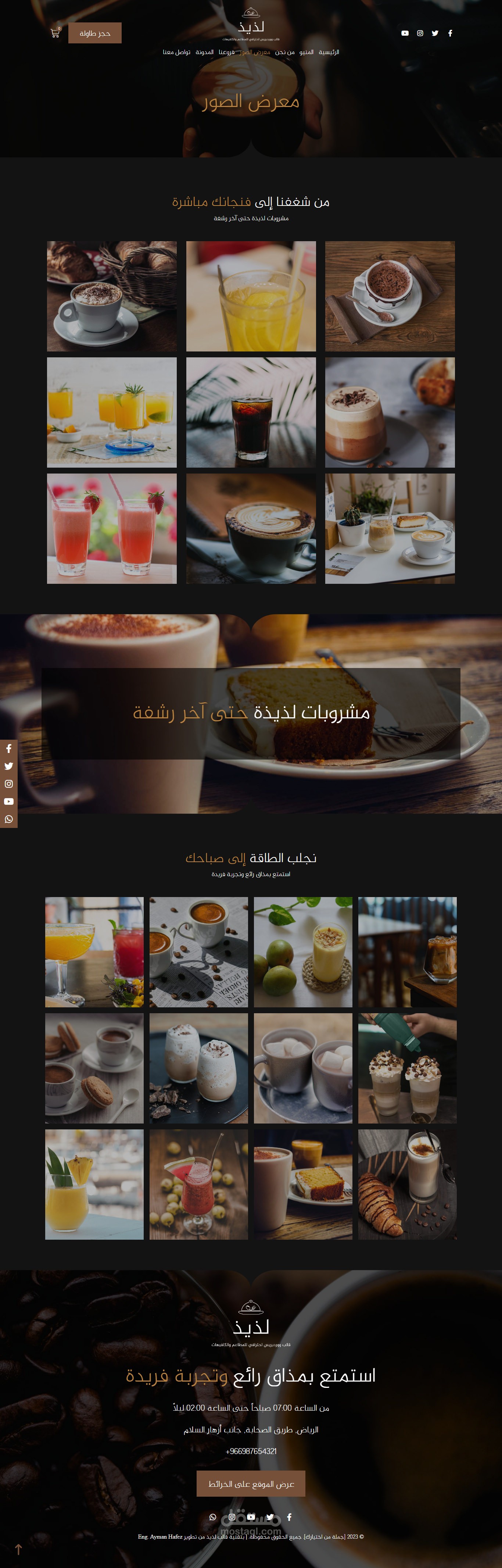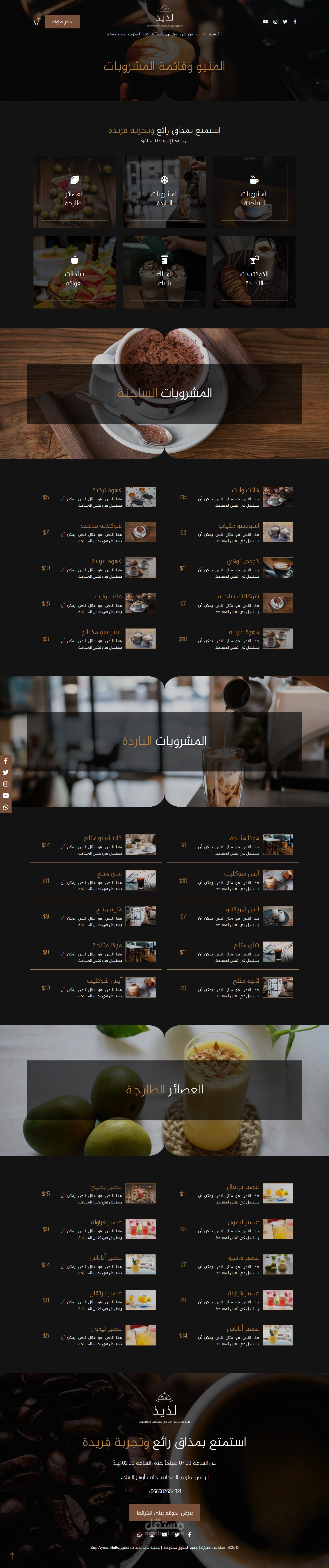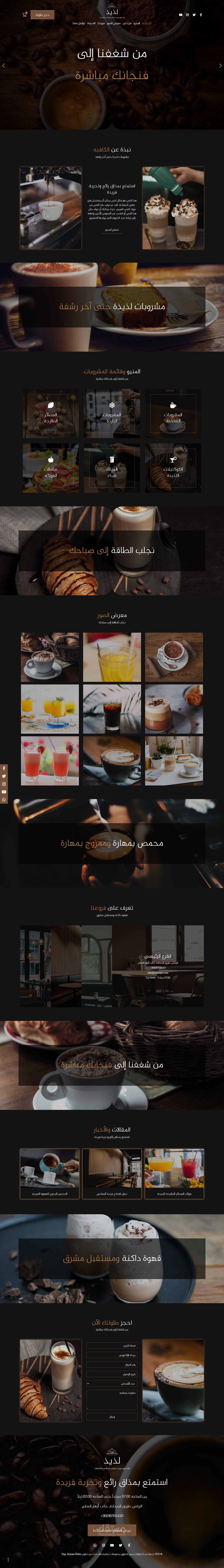 نموذج موقع إلكتروني لكافيه ومحل عصائر وهو أحد نماذج قالب لذيذ المتوفر حالياً على متجر بيكاليكا..