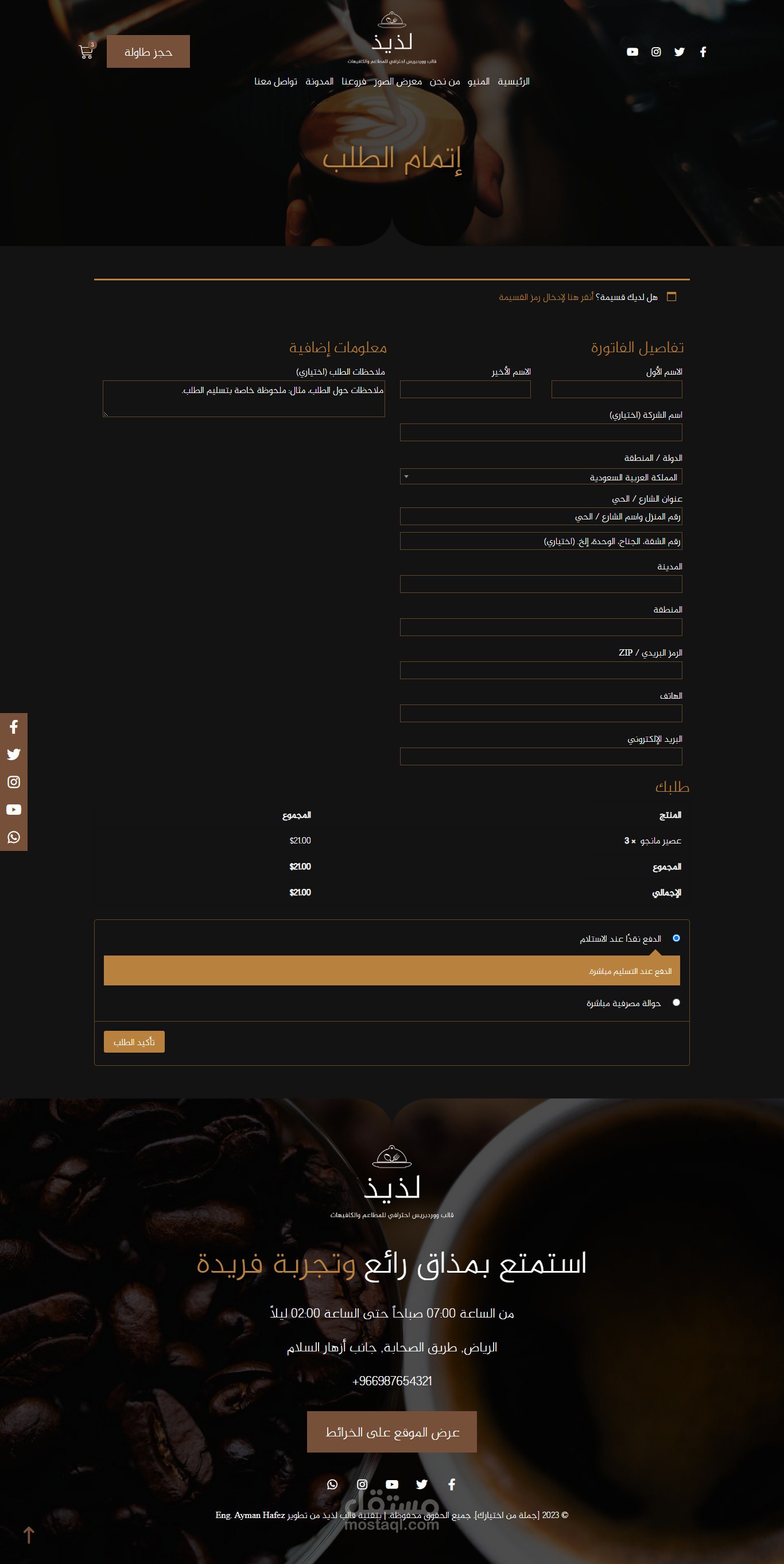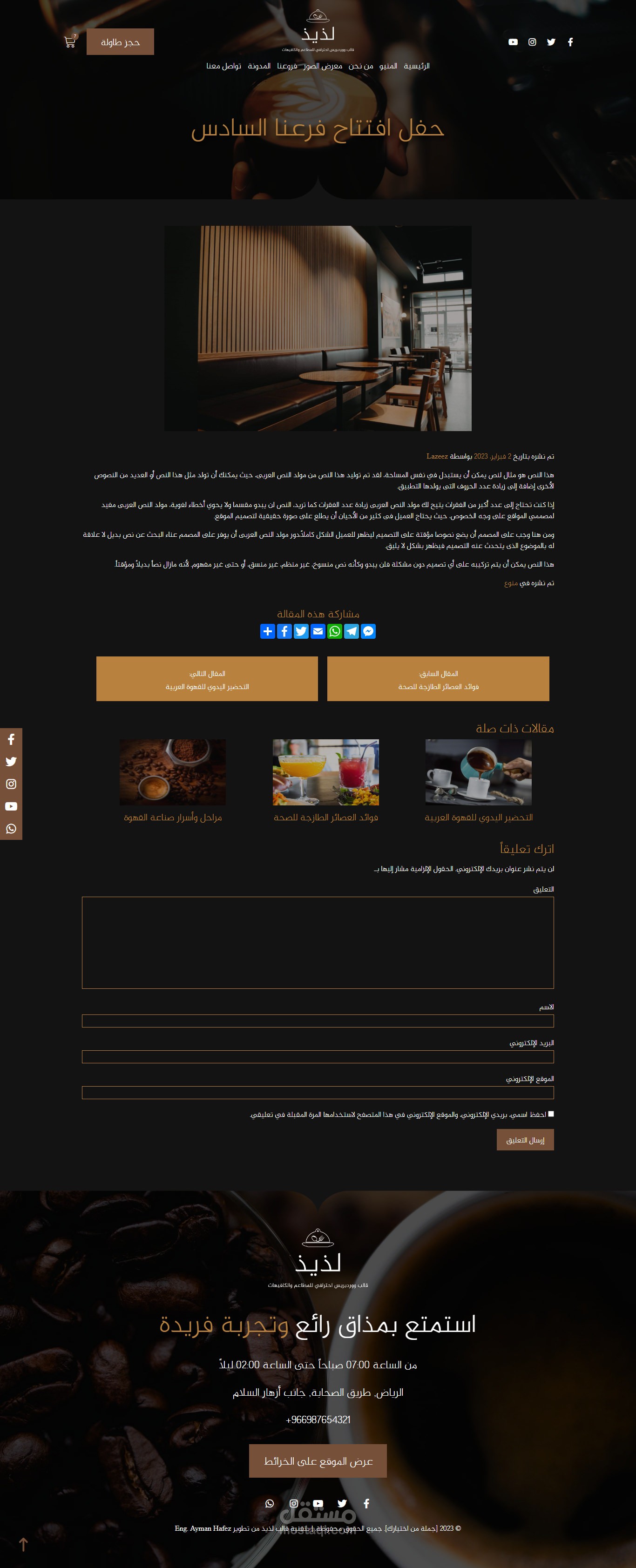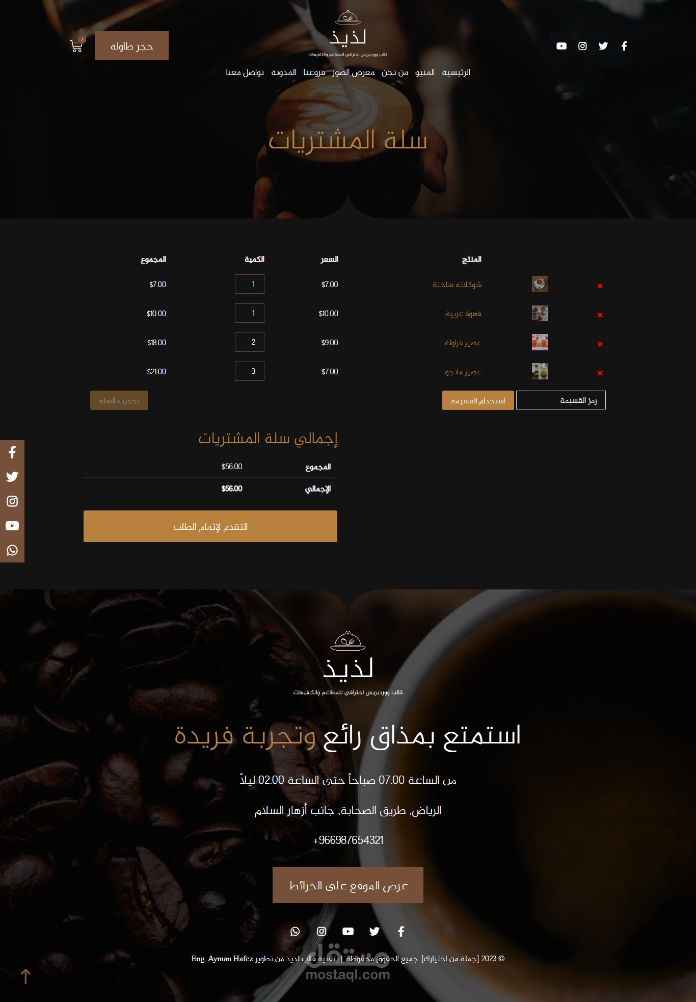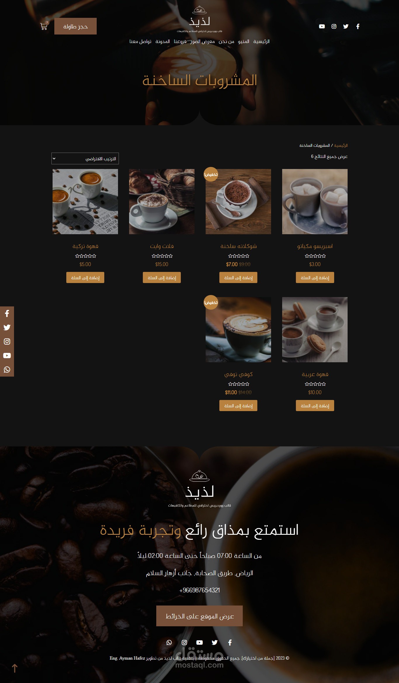 نموذج موقع إلكتروني لكافيه ومحل عصائر