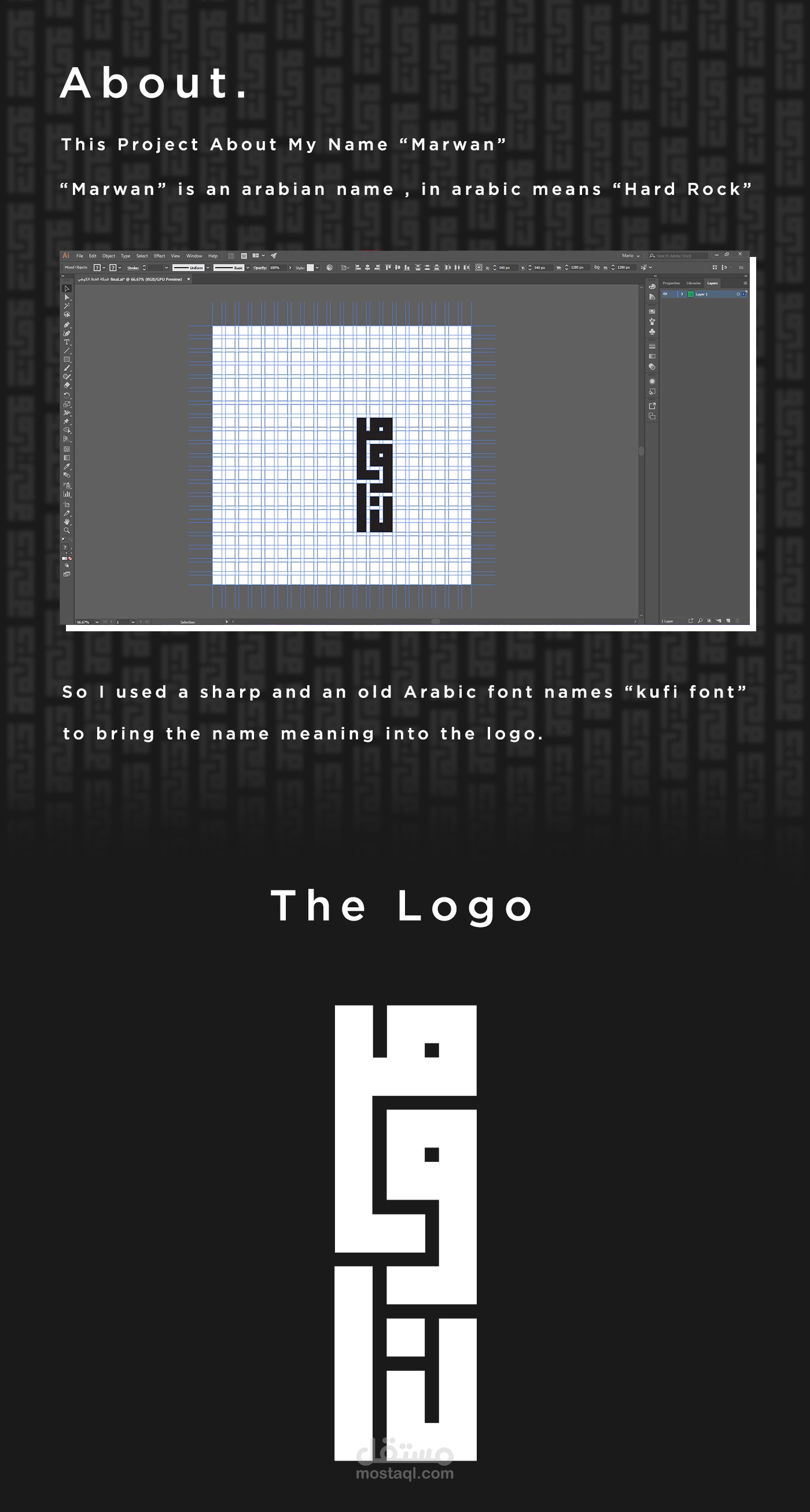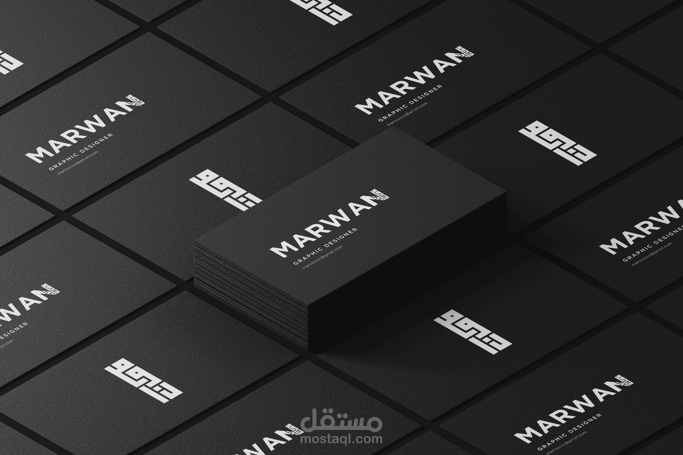 لوجو مستوحي من إسمي "مروان" مرسوم بالخط العربي الكوفي