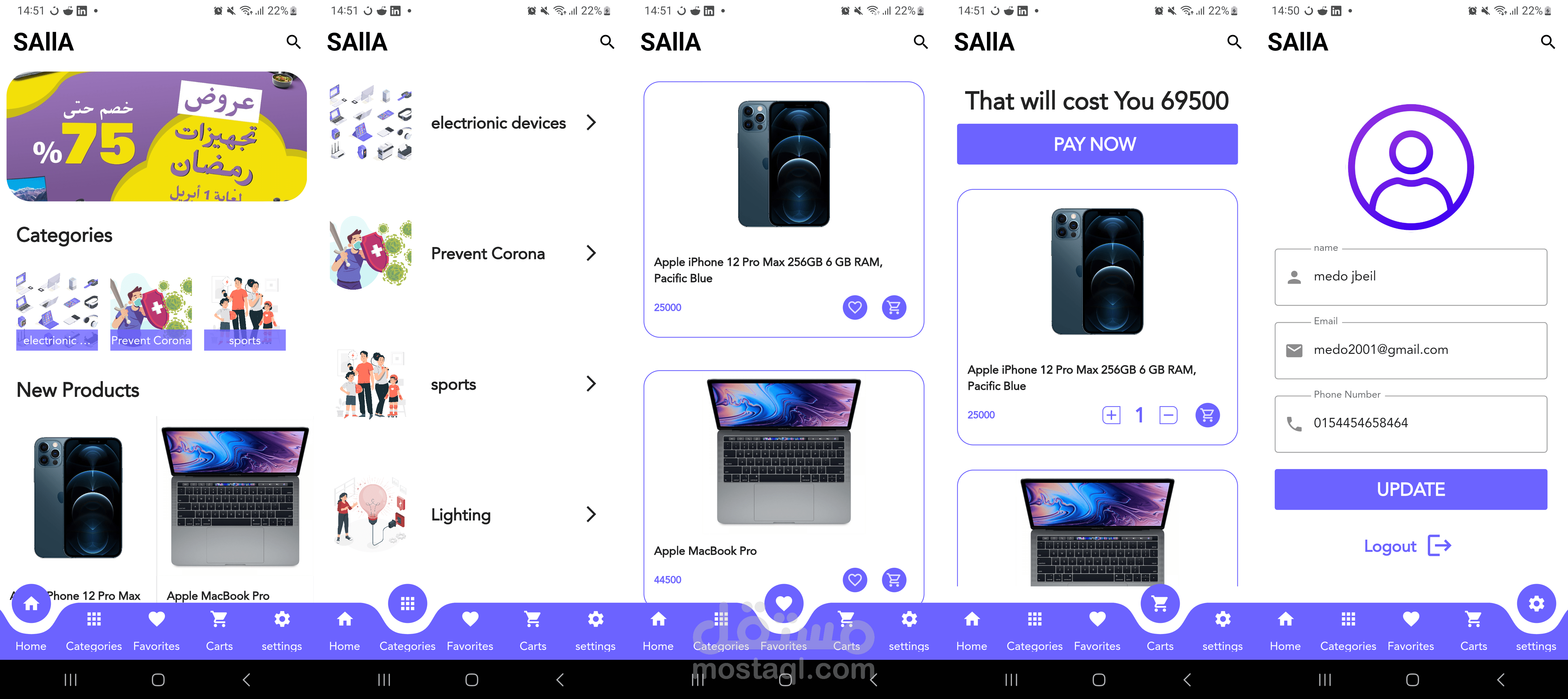This project highlights my expertise in Flutter development, specifically my proficiency in utilizing Dio Package for HTTP requests, implementing Shared Preferences for data storage, and using Bloc pattern for state management. It demonstrates my ability to create a functional and user-friendly mobile application with a focus on delivering an efficient shopping experience.