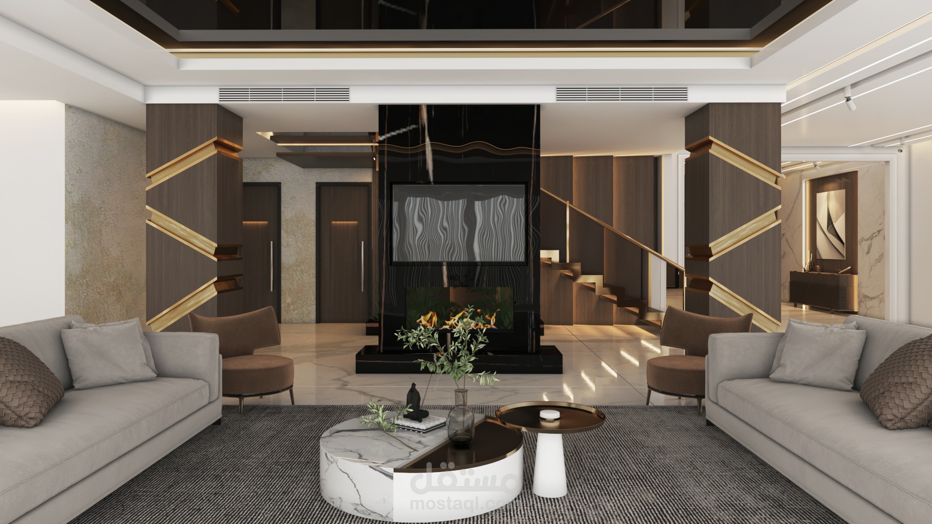 مشروع تصميم داخلى لفيلا بكمبوند الربوه بمصر