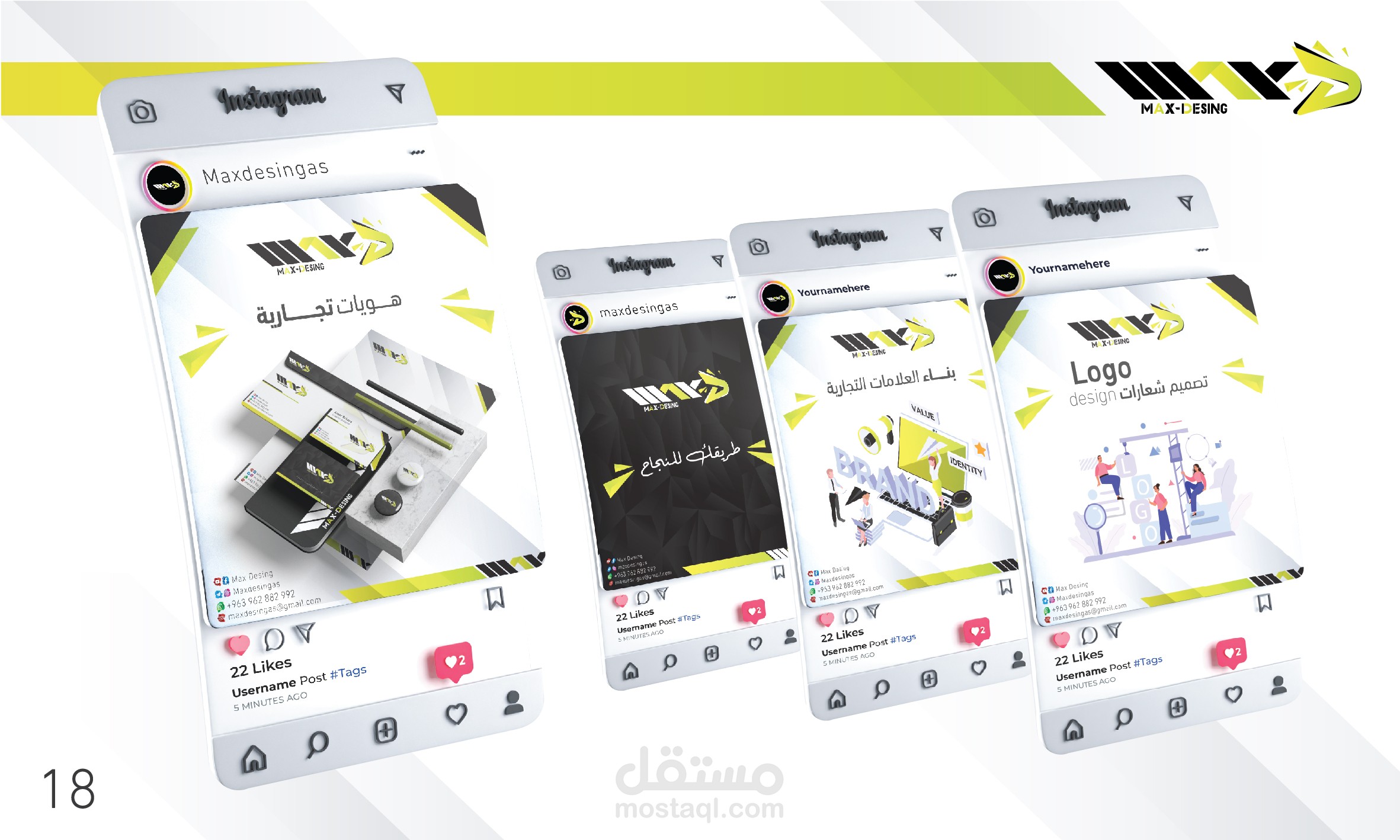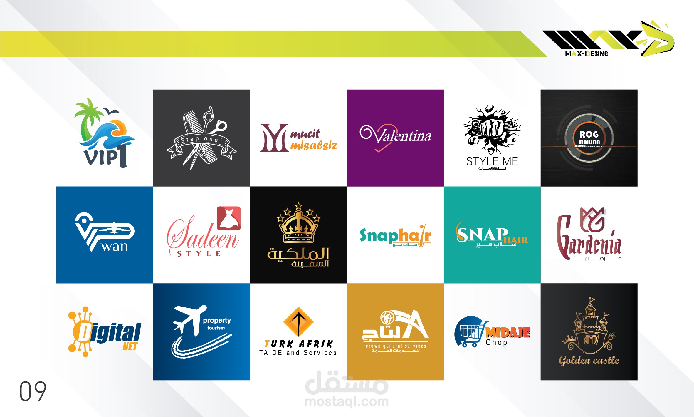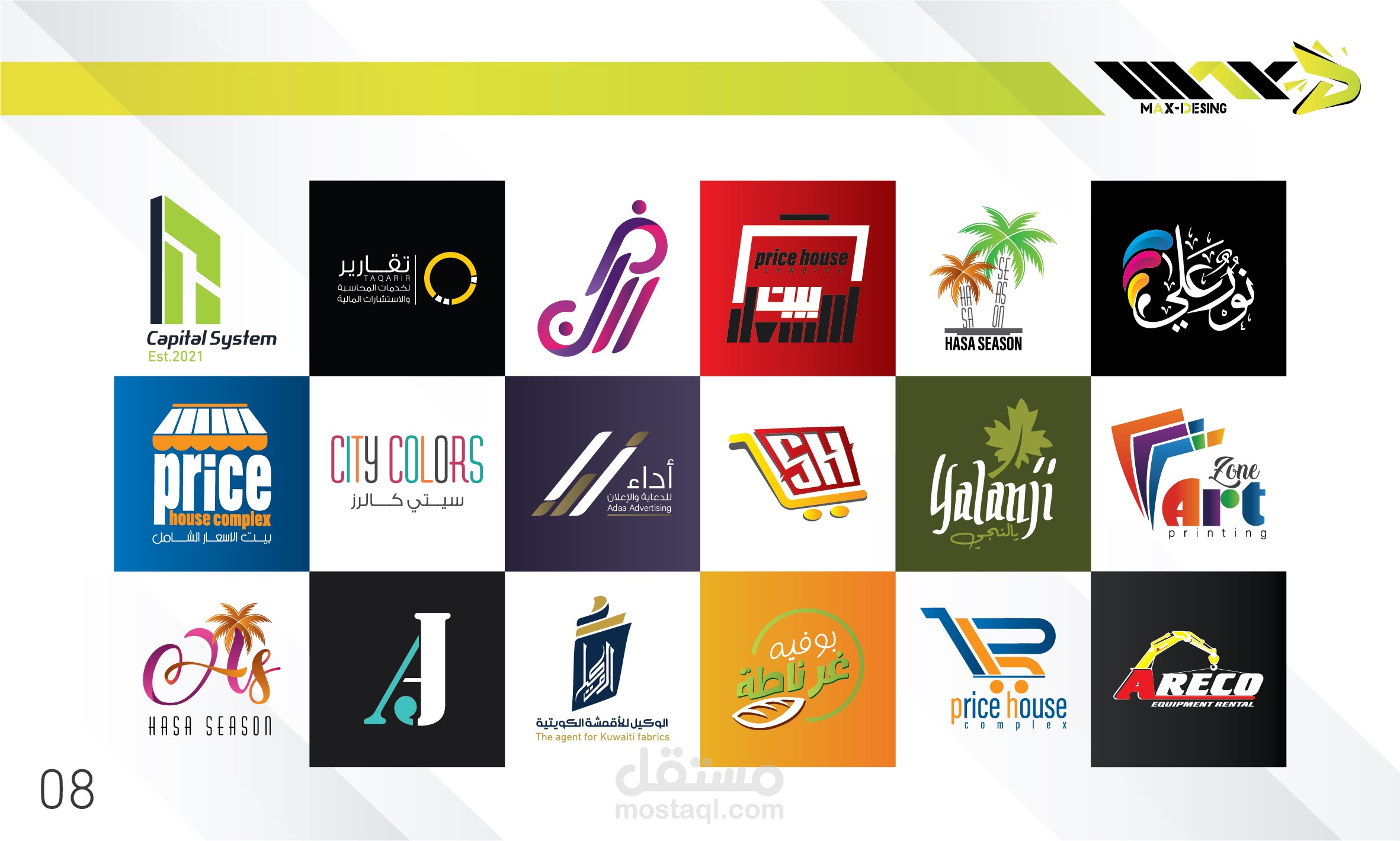 من تصاميم الشعارات والهويات البصرية والبرندات تصاميم السوشيال ميديا والتصاميم التجارية كاملة