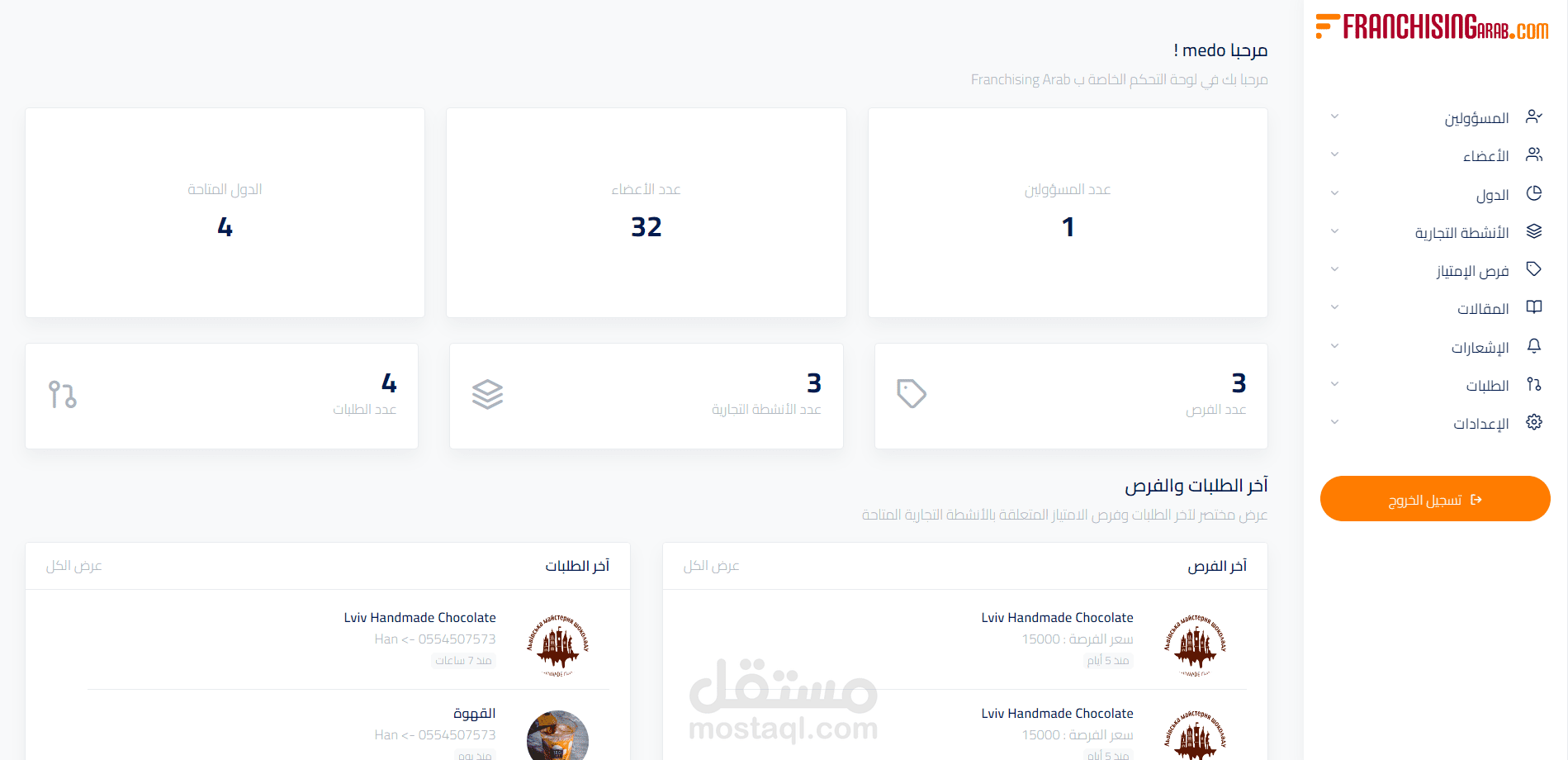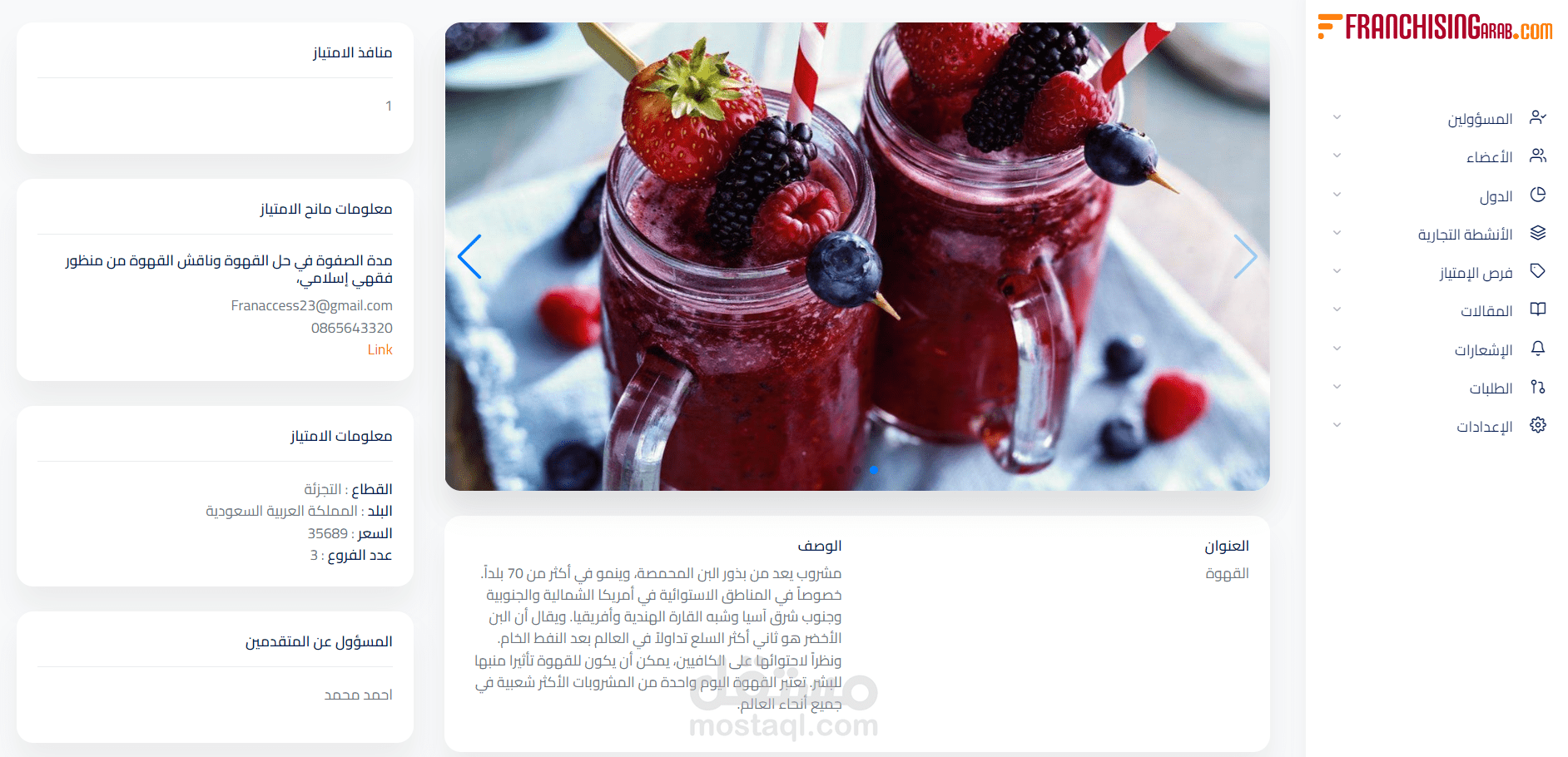 Franchise dashboard