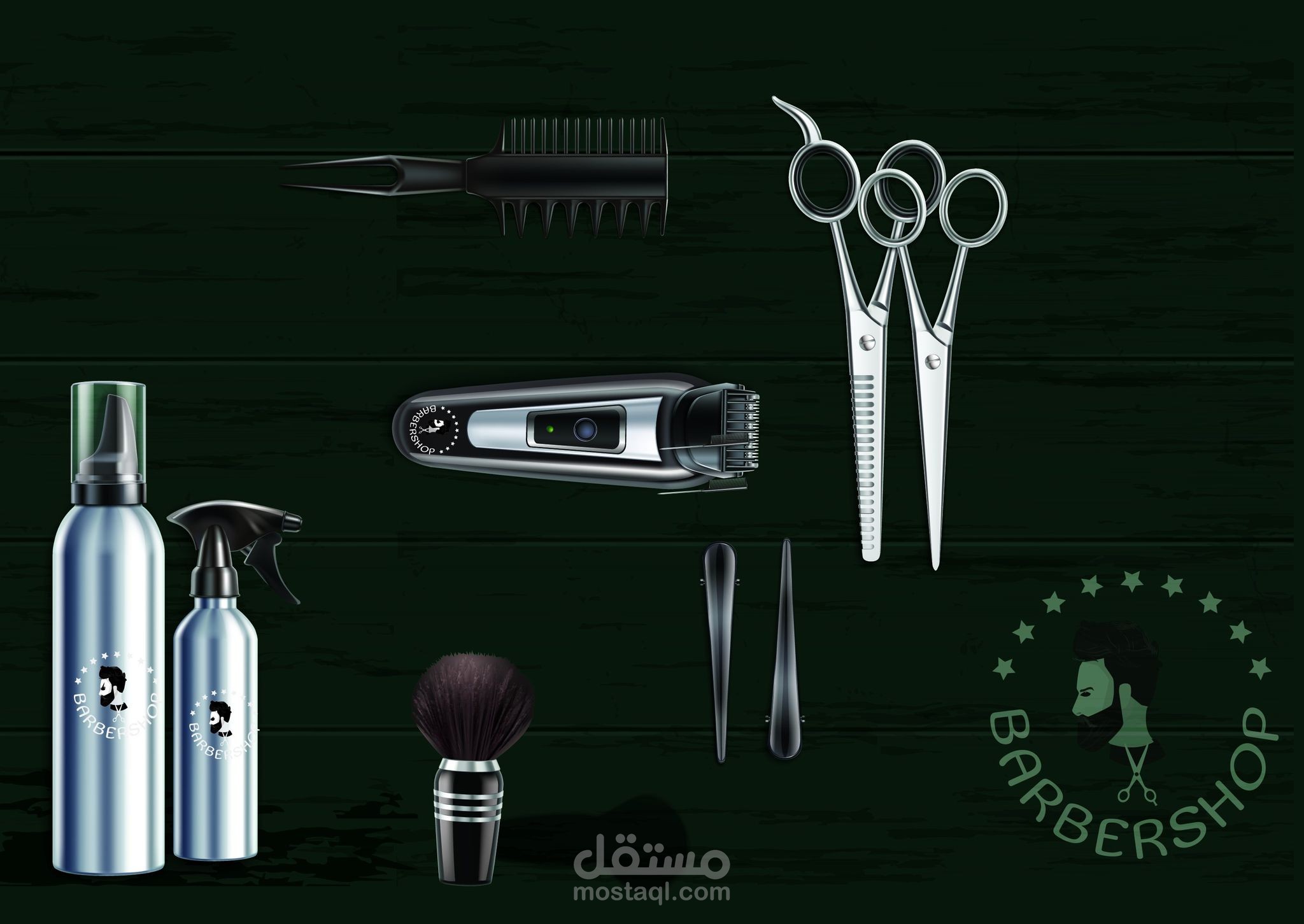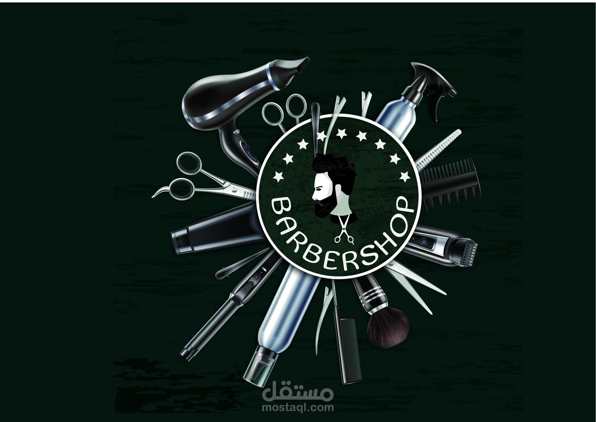 قمت بعمل لوجو لمحل حلاق رجالي علي برنامج Illustrator