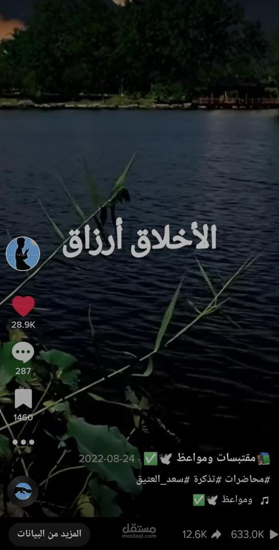 أضفت المقطع المقتطف من محاضرة الداعية السعودي سعد العتيق عن الأخلاق، والذي يمكن أن يكون نصيحة أو قصة ملهمة تتعلق بالأخلاق الإسلامية.