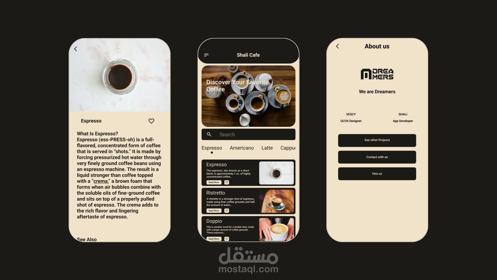 هذه واجهة قائمة القهوة مصممة لمنصات الأجهزة المحمولة للتعرف على جميع وصفات القهوة واكتشاف قهوتك المفضلة