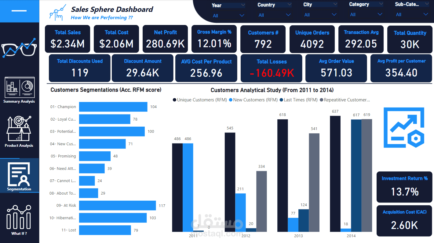 تقسيم العملاء إلى شرائح (Champion, Loyal, At Risk, Lost …).