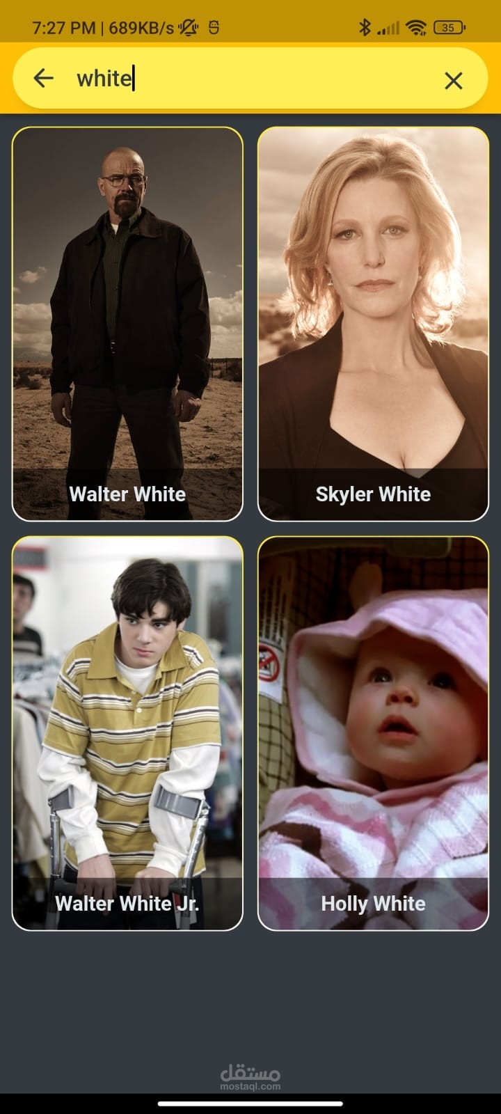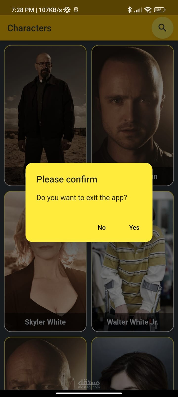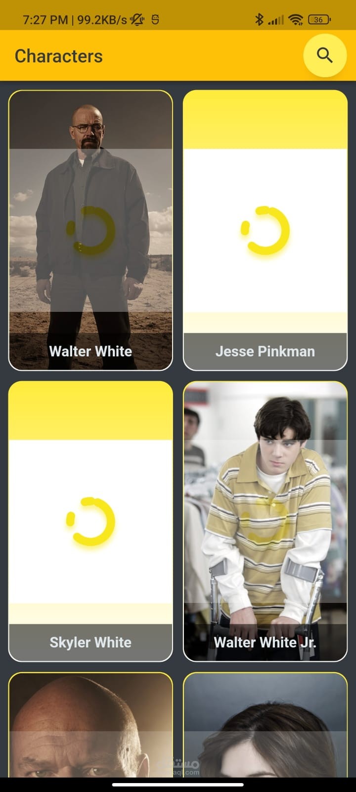 An app showing all breaking bad characters with images and description about all of them.