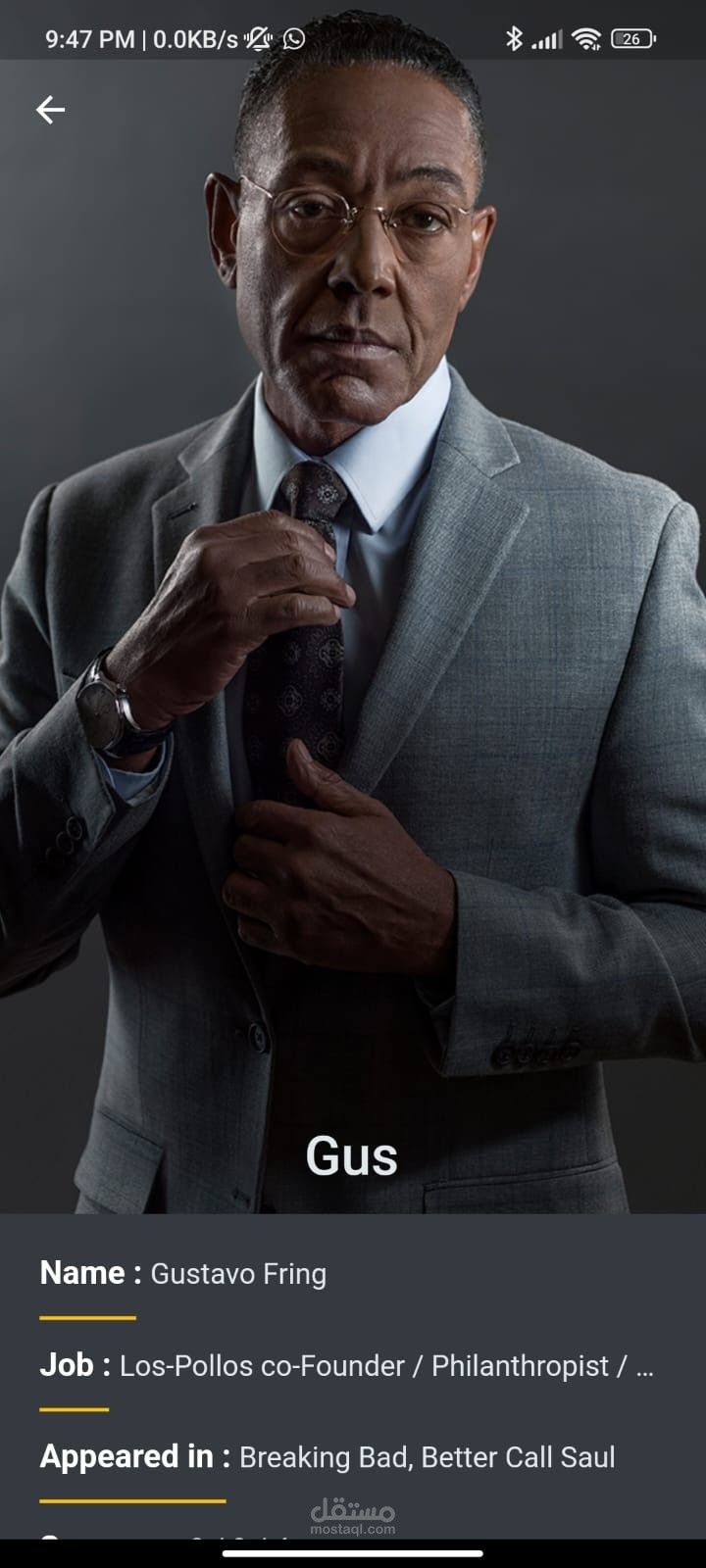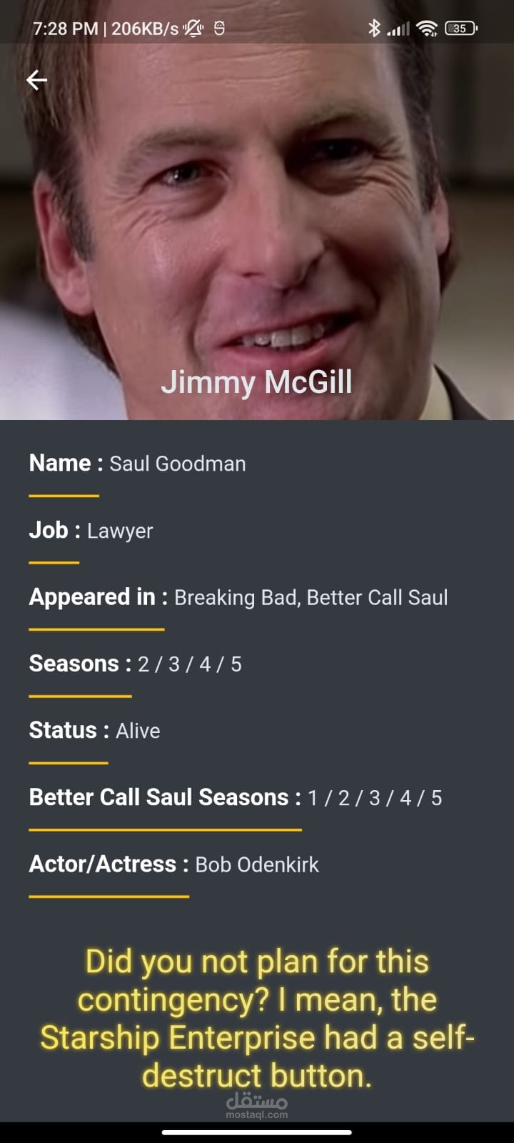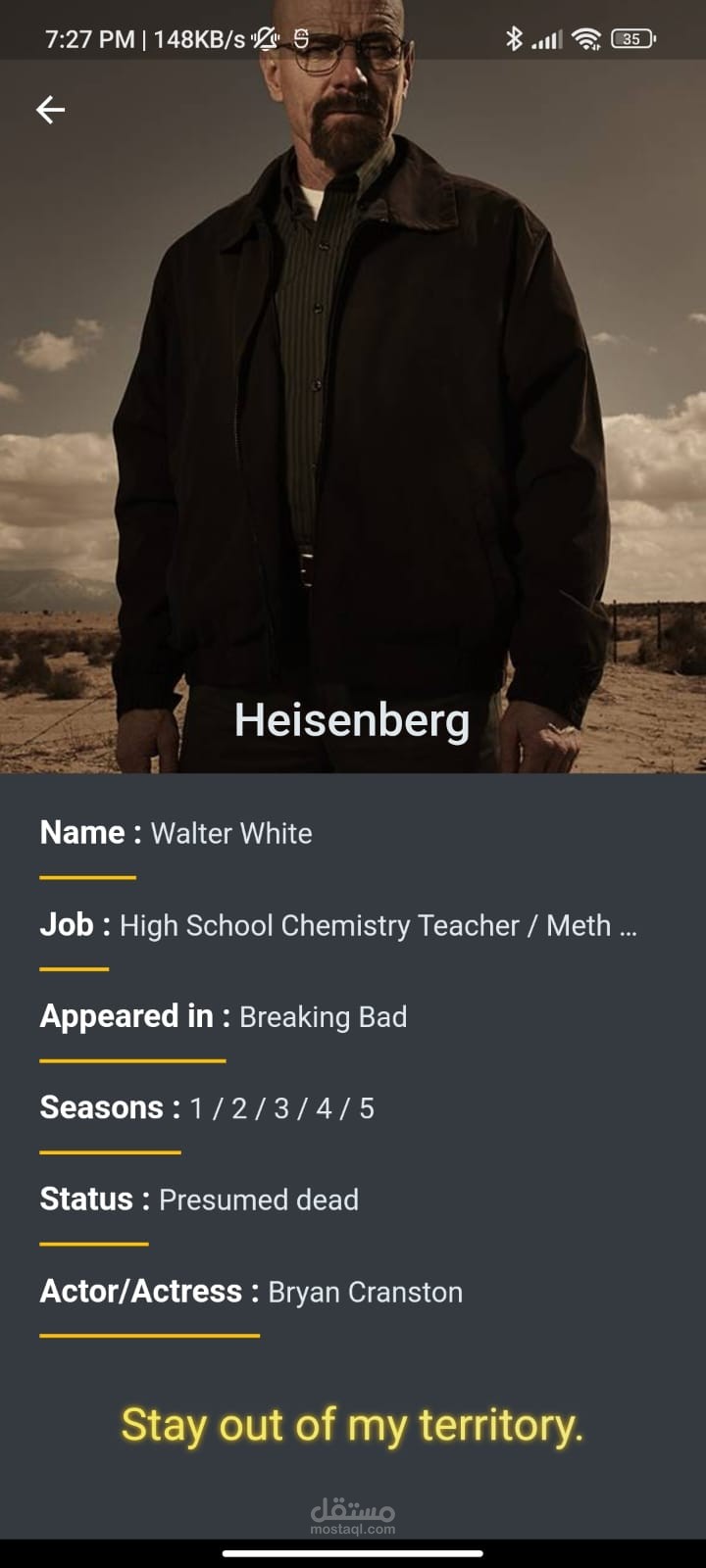 An app showing all breaking bad characters with images and description about all of them.