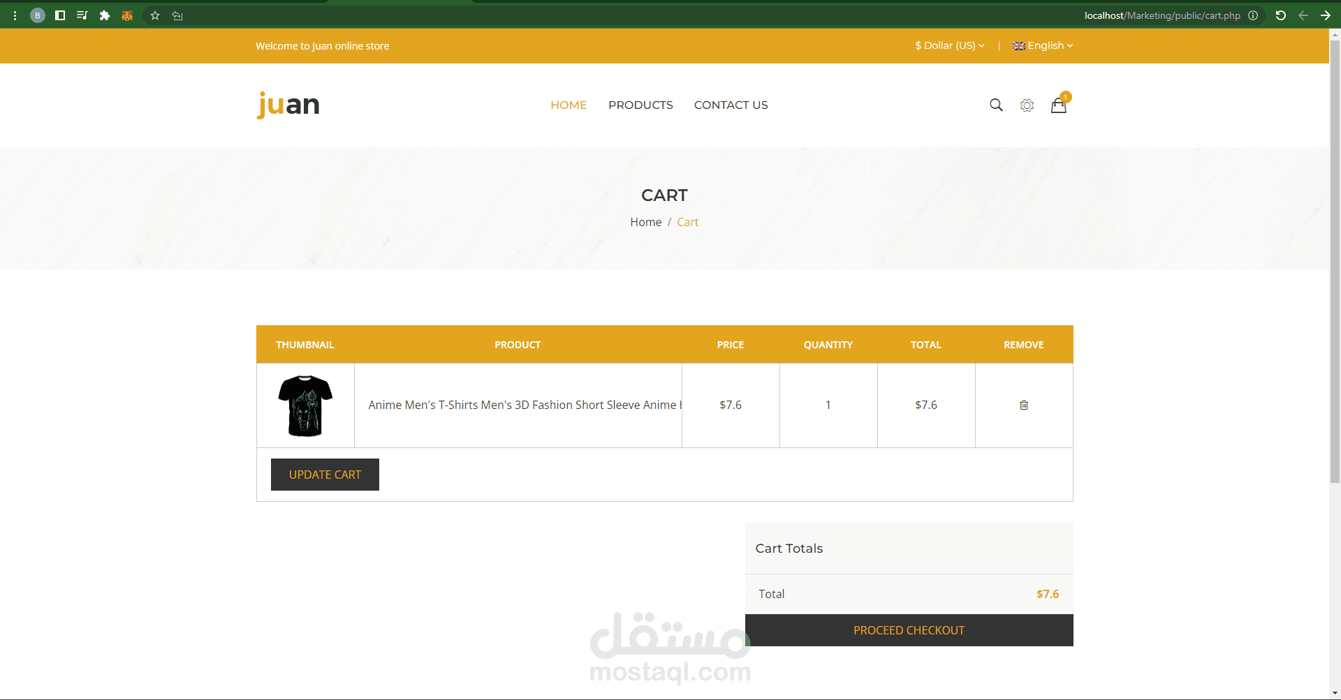 - صفحة العربة ، تظهر المنتجات التي تمت إضافتها إليها.