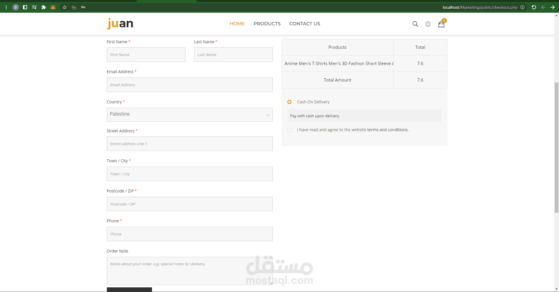 - صفحة معلومات الشحن ، يتم إدخال البيانات من خلالها لإرسال المنتج.