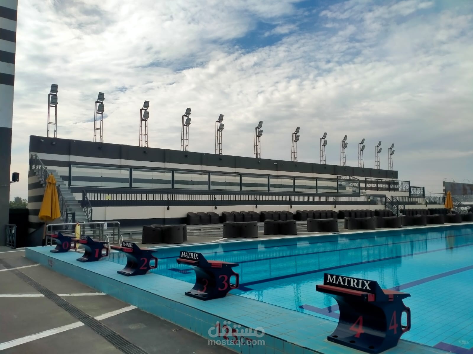 The swimming pool complex consists of five swimming pools, including the Olympic, educational, training and recreational swimming pool and the covered ladies' swimming pool.