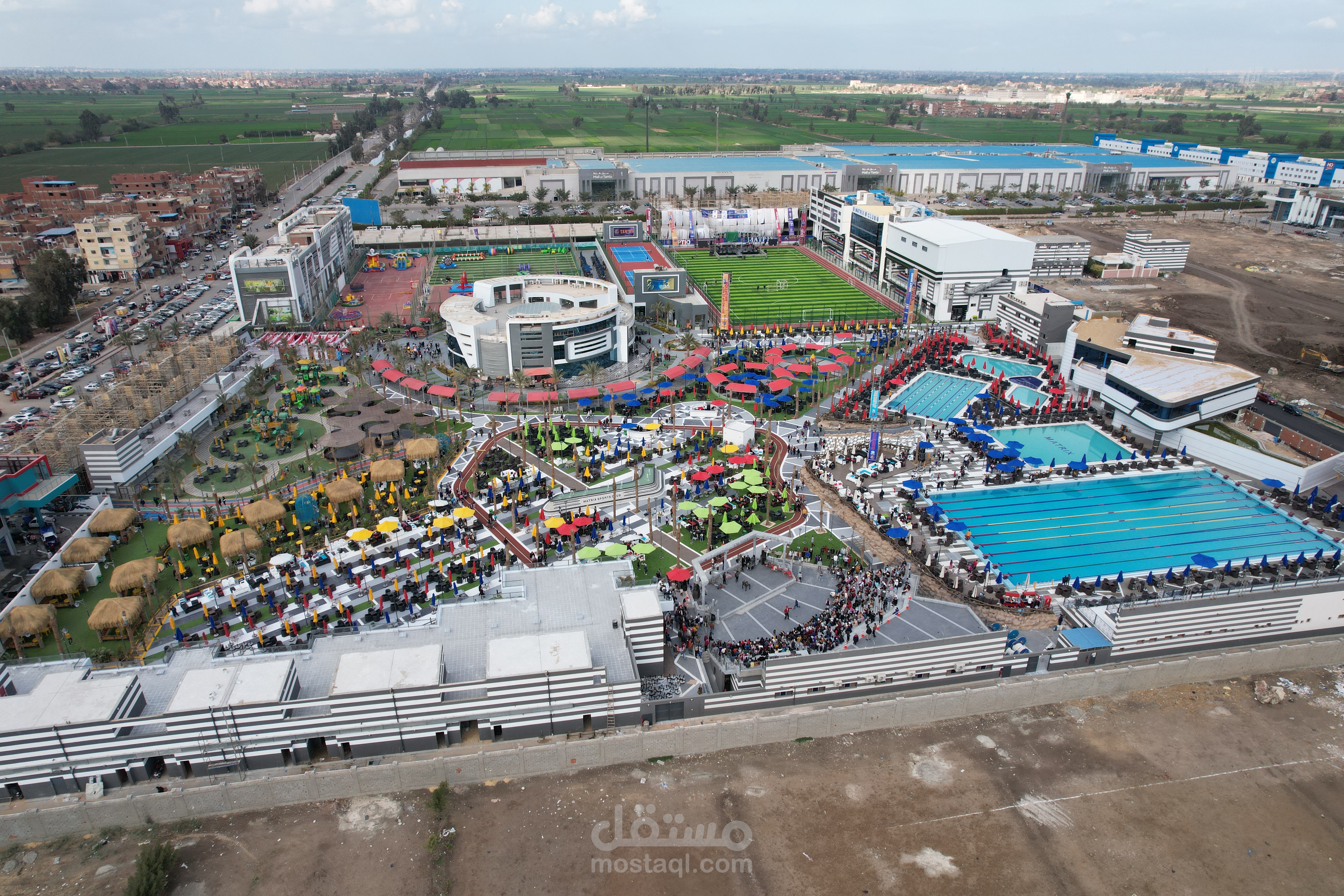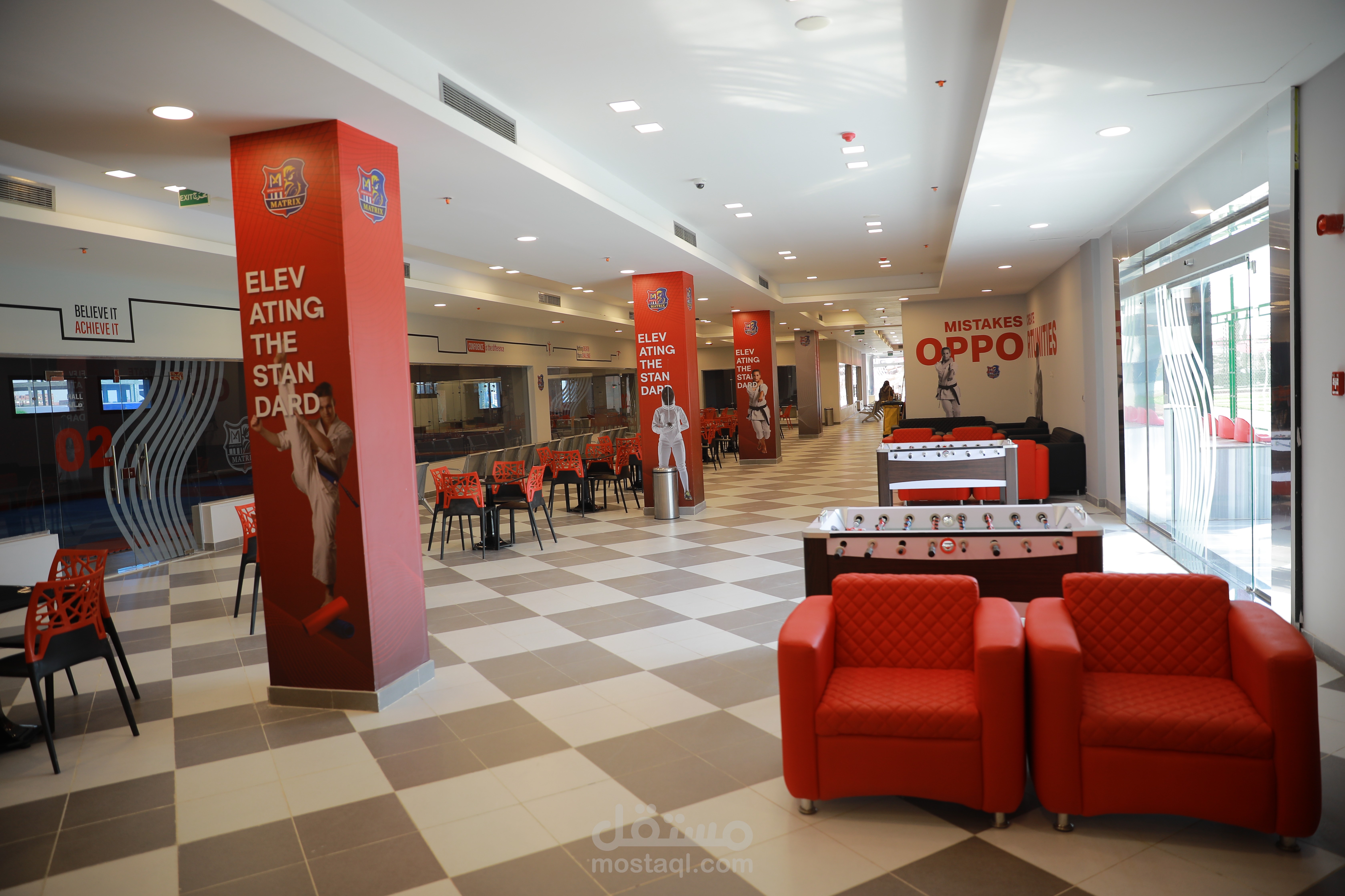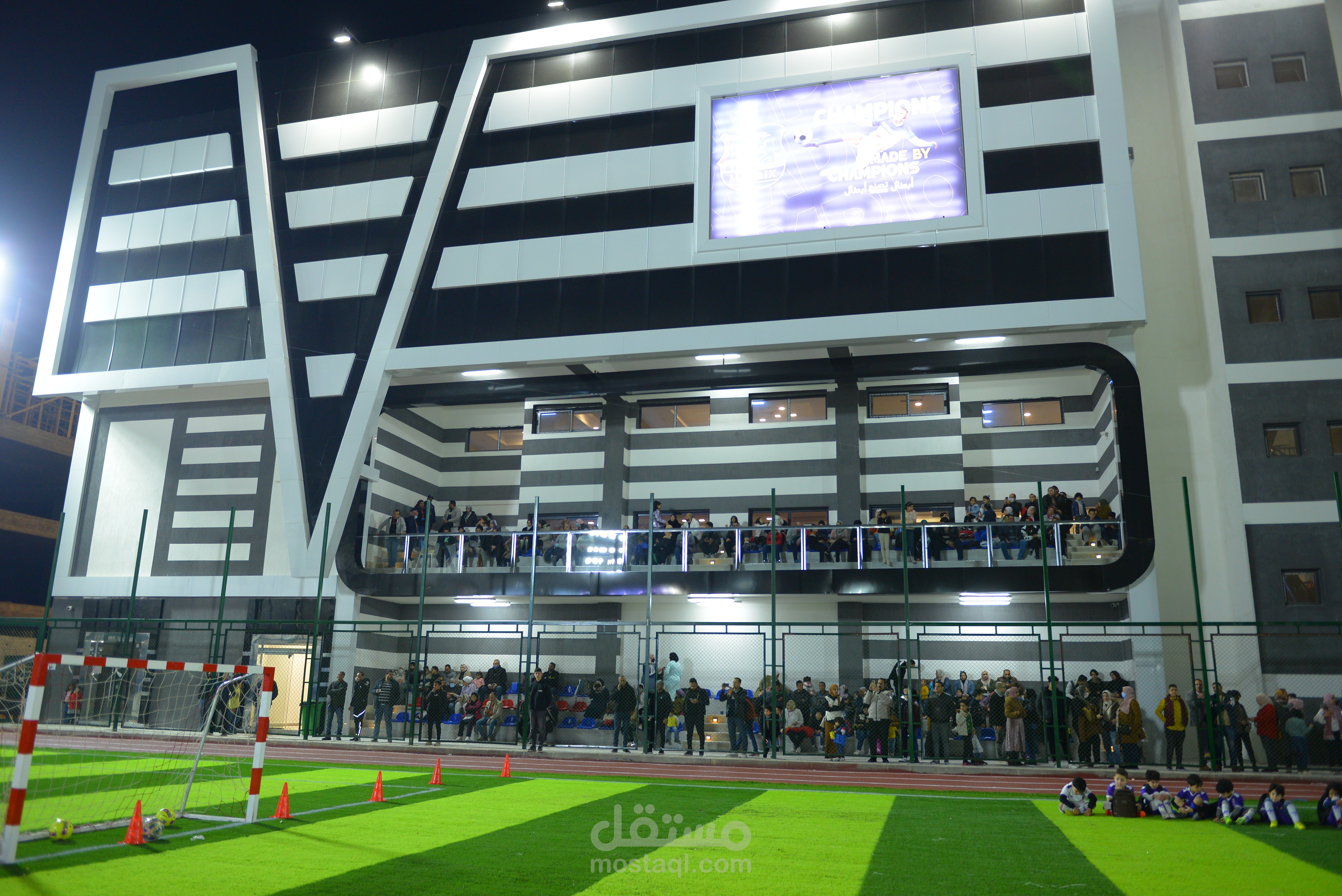 Building sports academies, including: Judo Academy with an area of 220 square meters, Taekwondo with an area of 200 square meters, Karate with an area of 220 square meters, fencing with an area of 190 square meters, gymnastics with an area of 900 square meters, a multi-sports hall with an area of 820 square meters, a central gym with an area of 1200 square meters, as well as ballet academies, musical drawing, tennis Table with an area of 10890 square for the building.