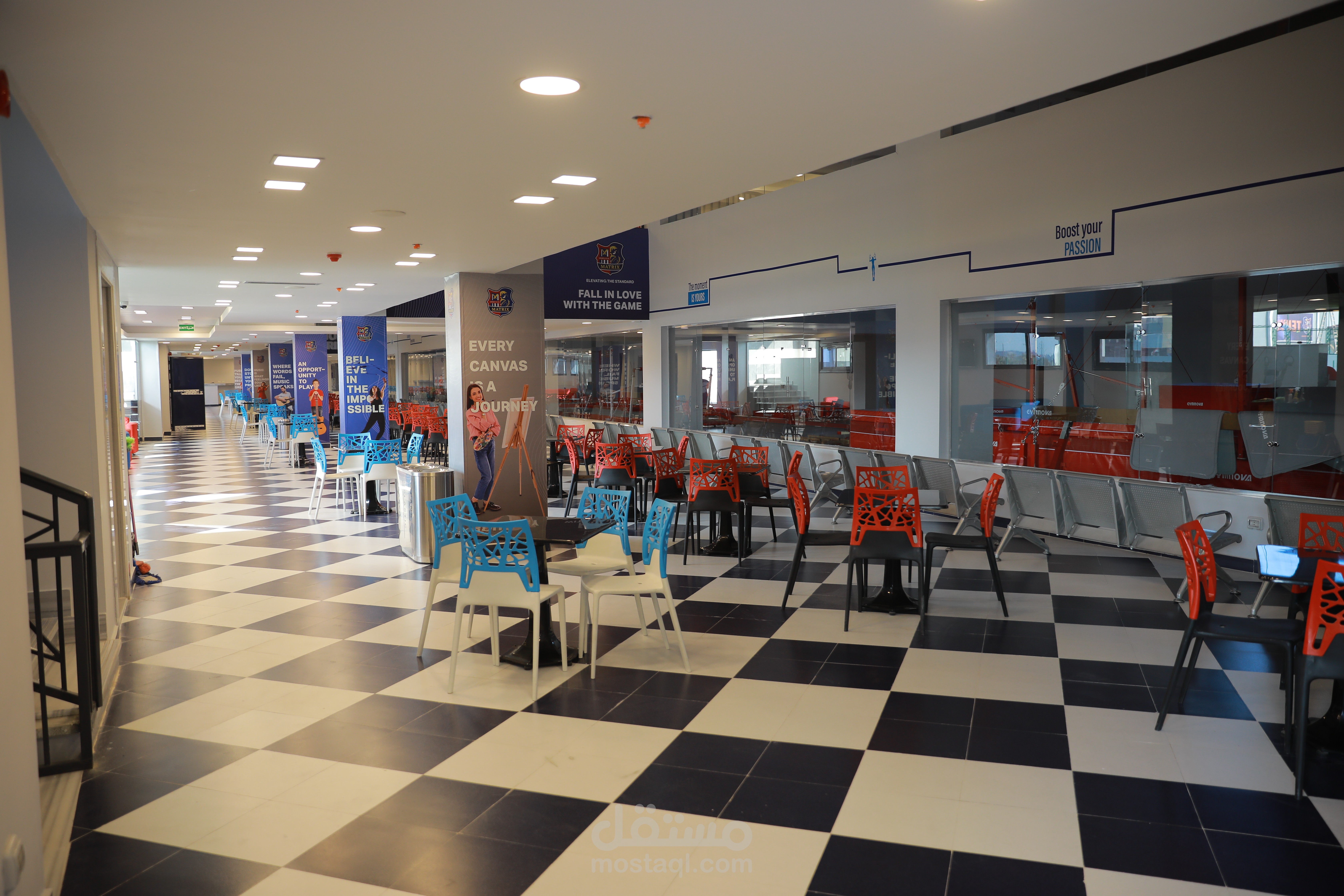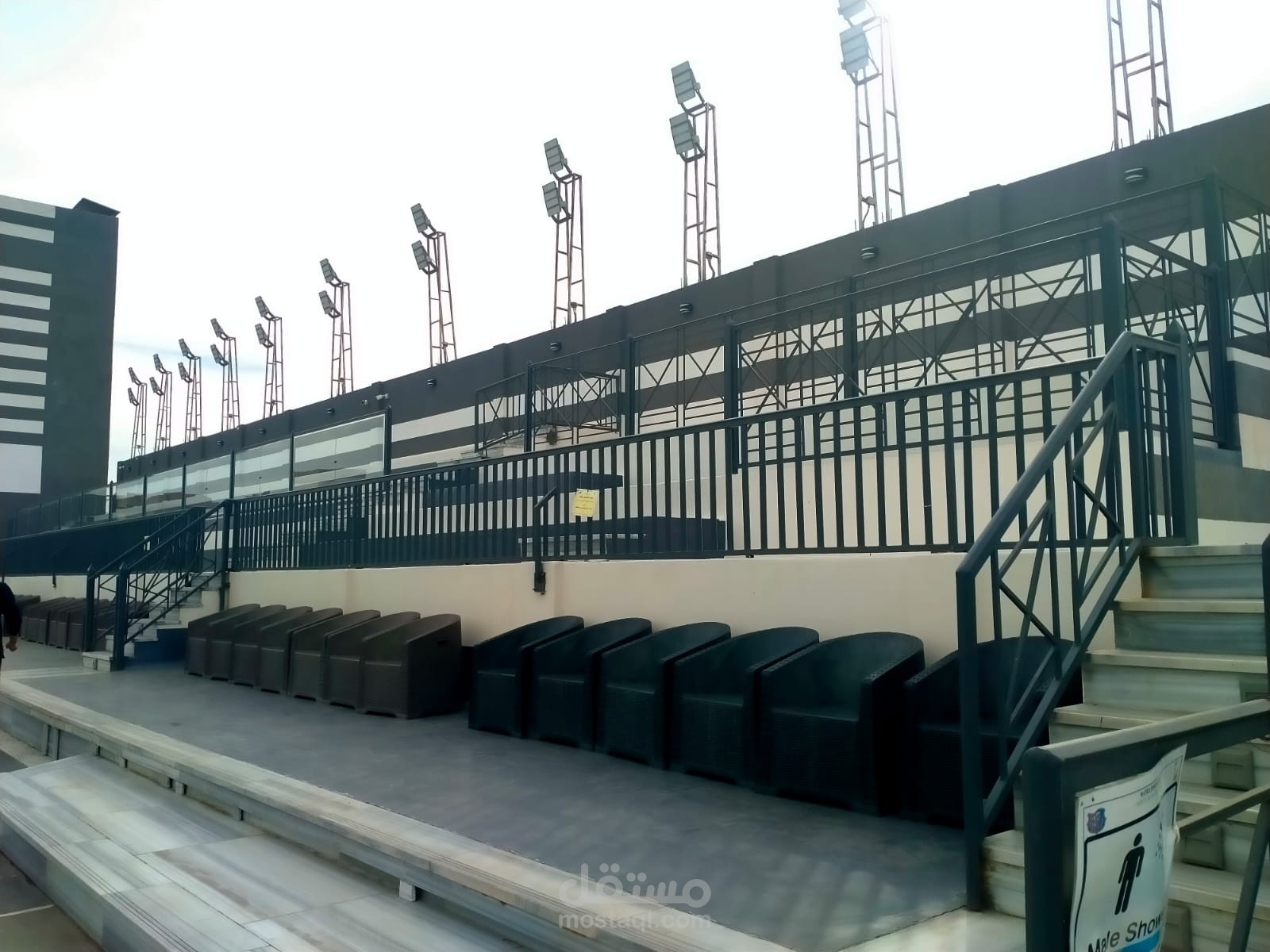 Club house building consists of social halls for young people and the elderly, a reading hall, a cafeteria, a restaurant, outdoor terraces and a rooftop restaurant. with an area 3950 square meters