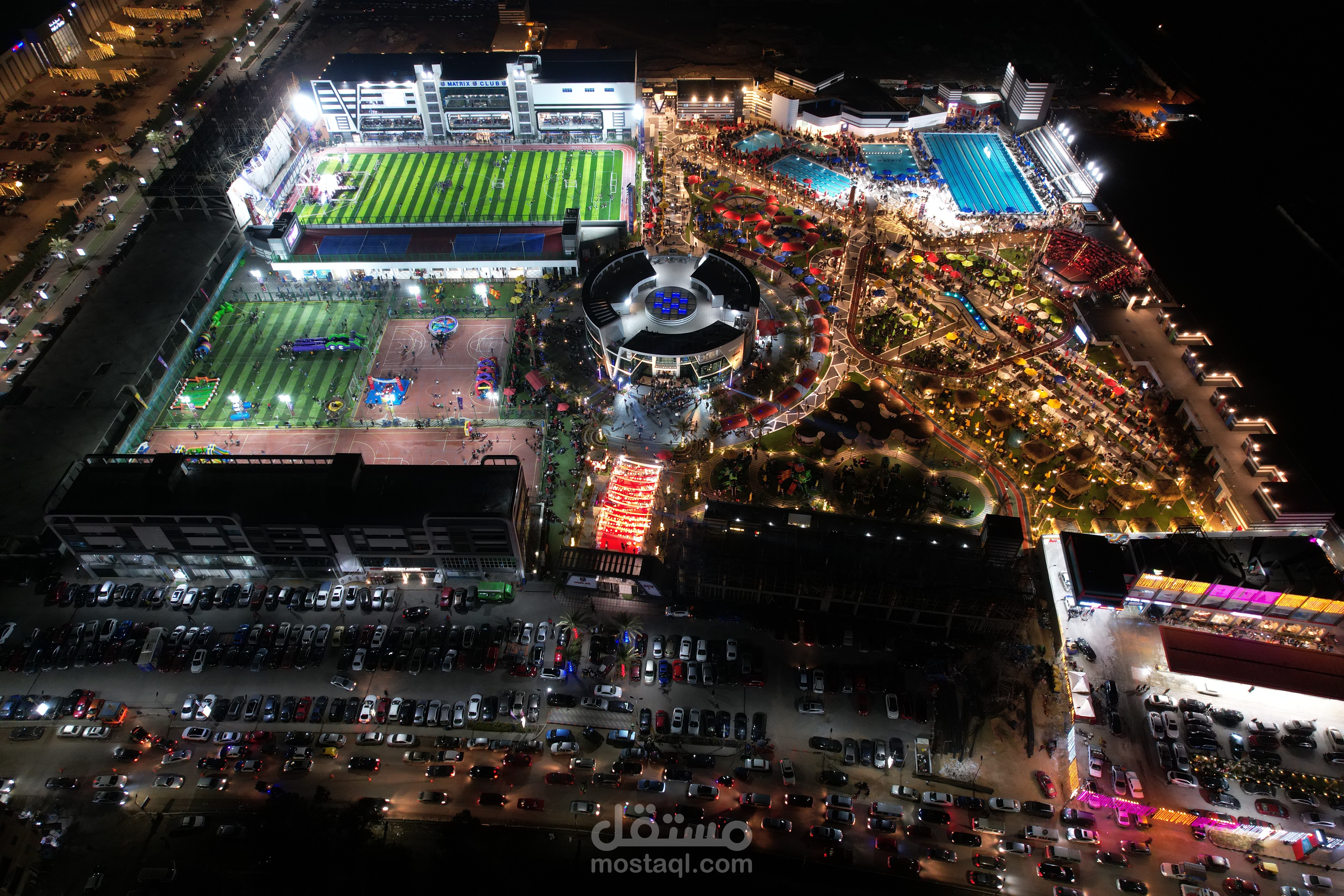 Building sports academies, including: Judo Academy with an area of 220 square meters, Taekwondo with an area of 200 square meters, Karate with an area of 220 square meters, fencing with an area of 190 square meters, gymnastics with an area of 900 square meters, a multi-sports hall with an area of 820 square meters, a central gym with an area of 1200 square meters, as well as ballet academies, musical drawing, tennis Table with an area of 10890 square for the building.