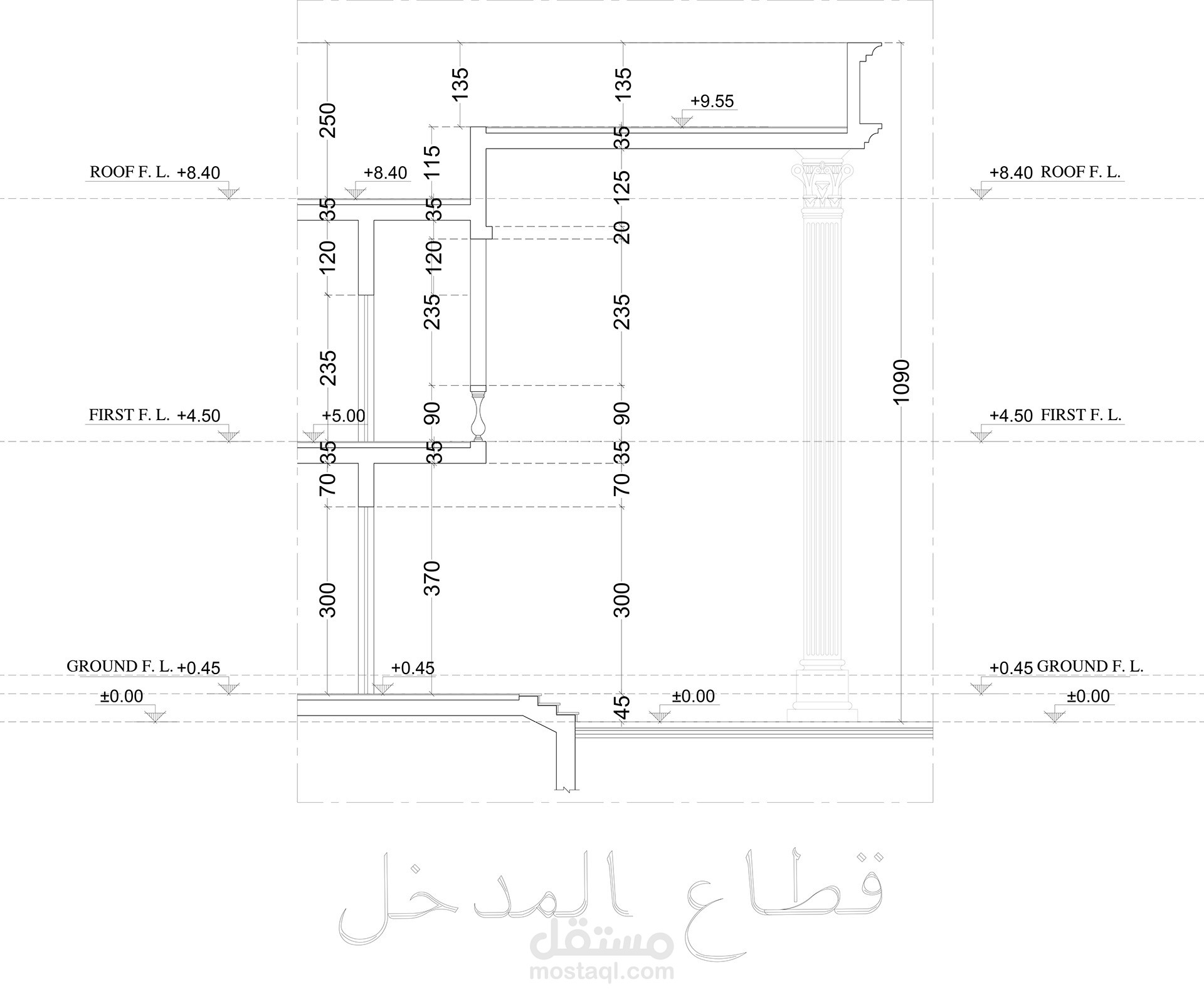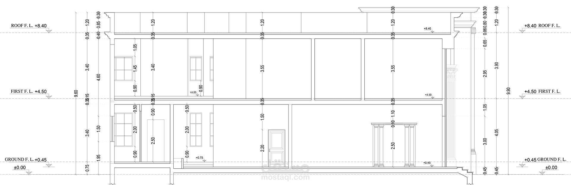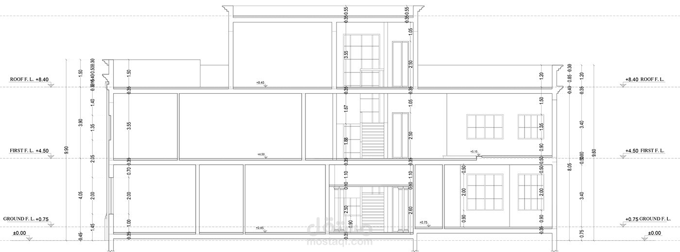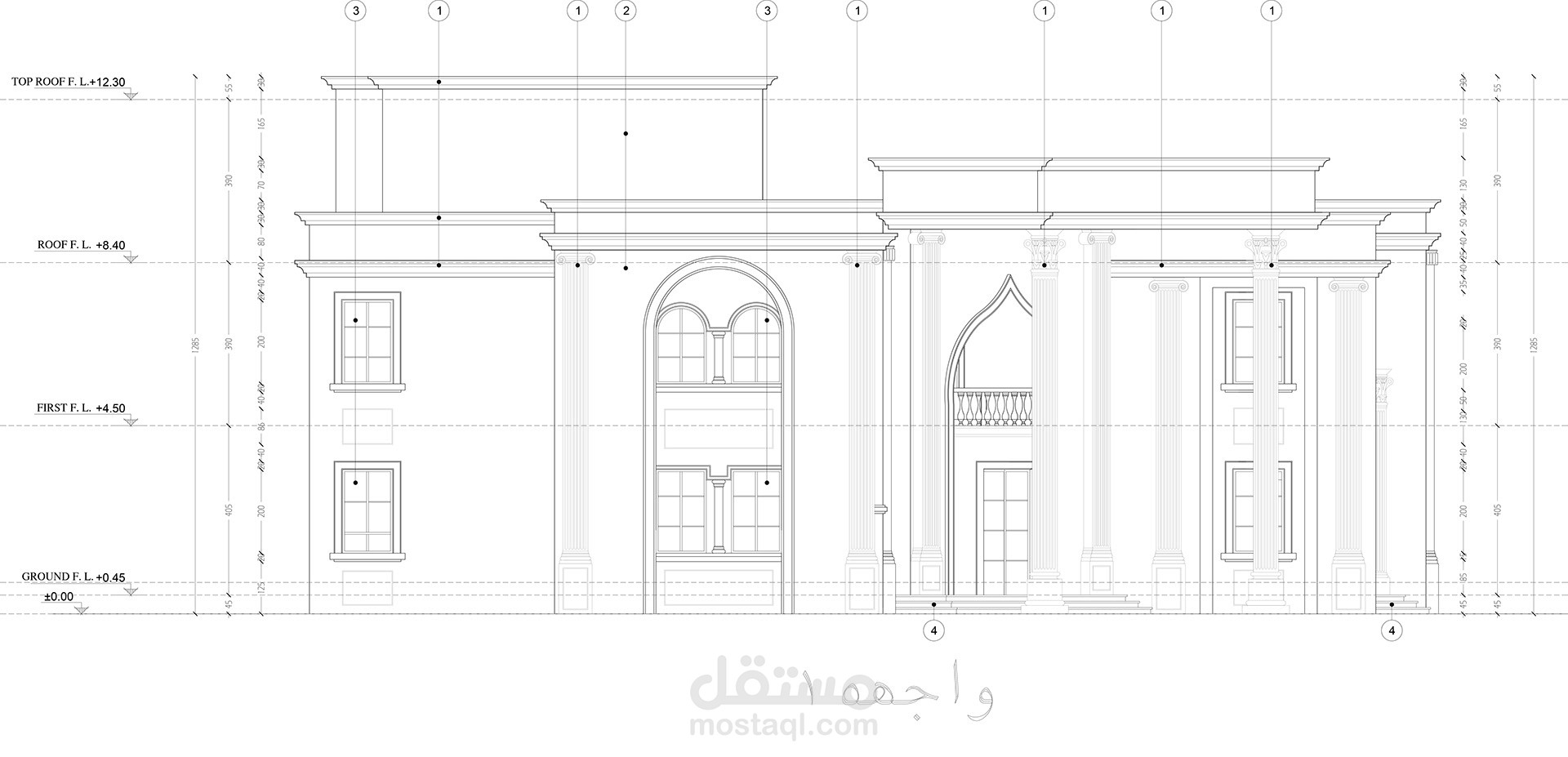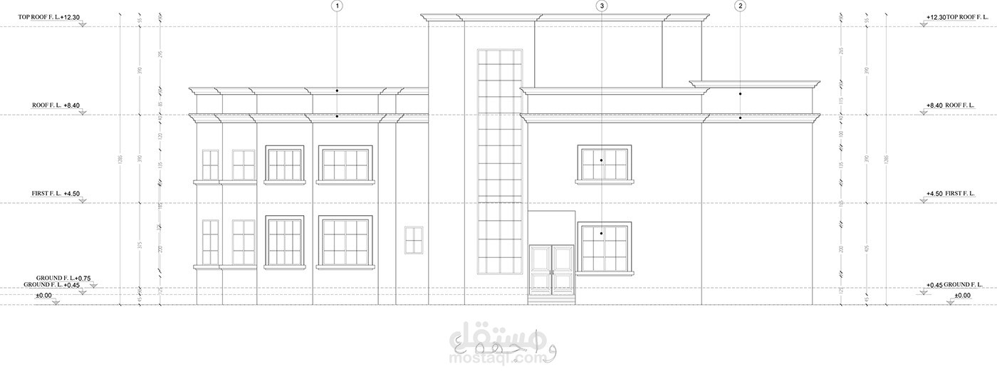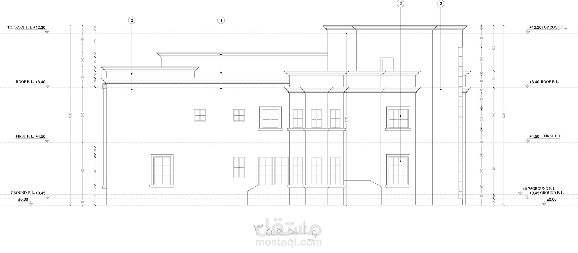 عمل التصميم ثنائي الابعاد للدور الارضي والاول علوي والسطح وكذلك الواجهات الخارجيه