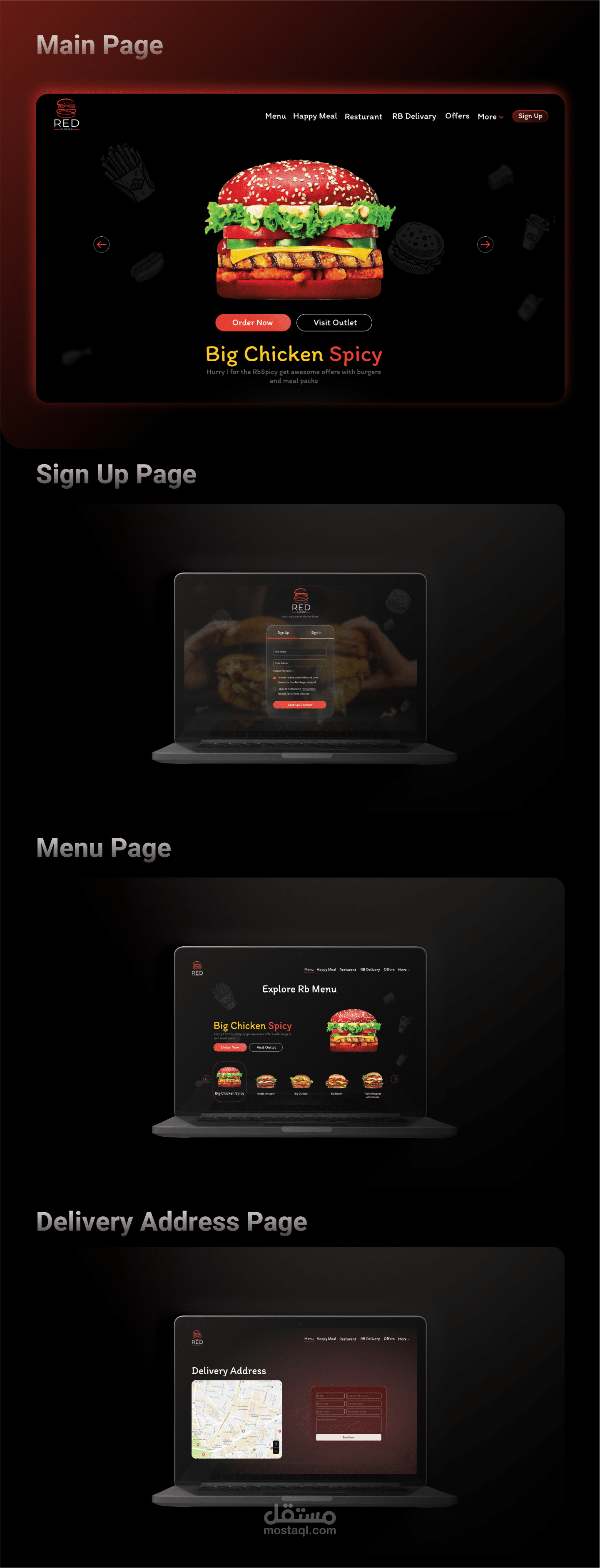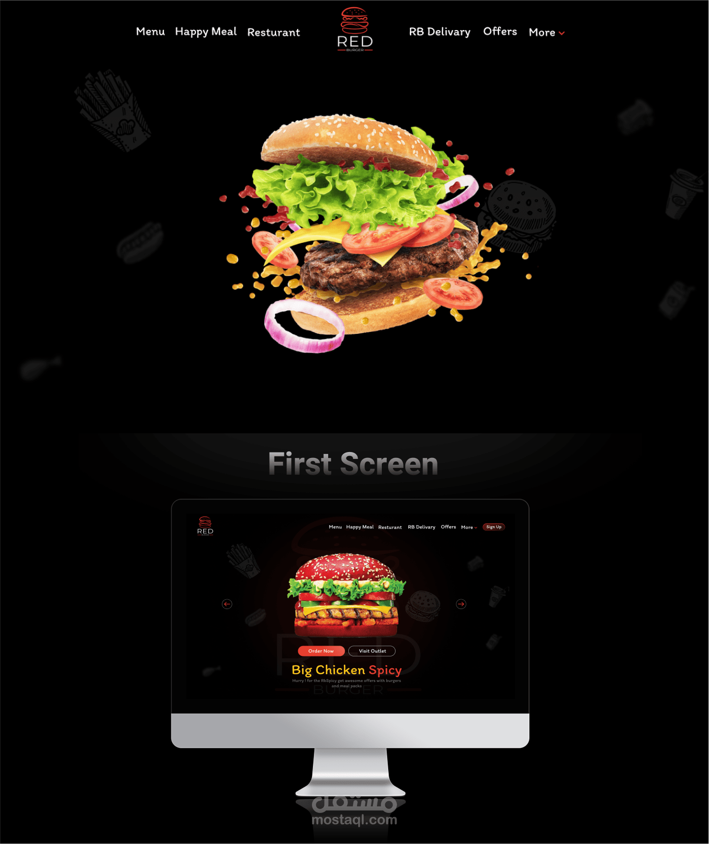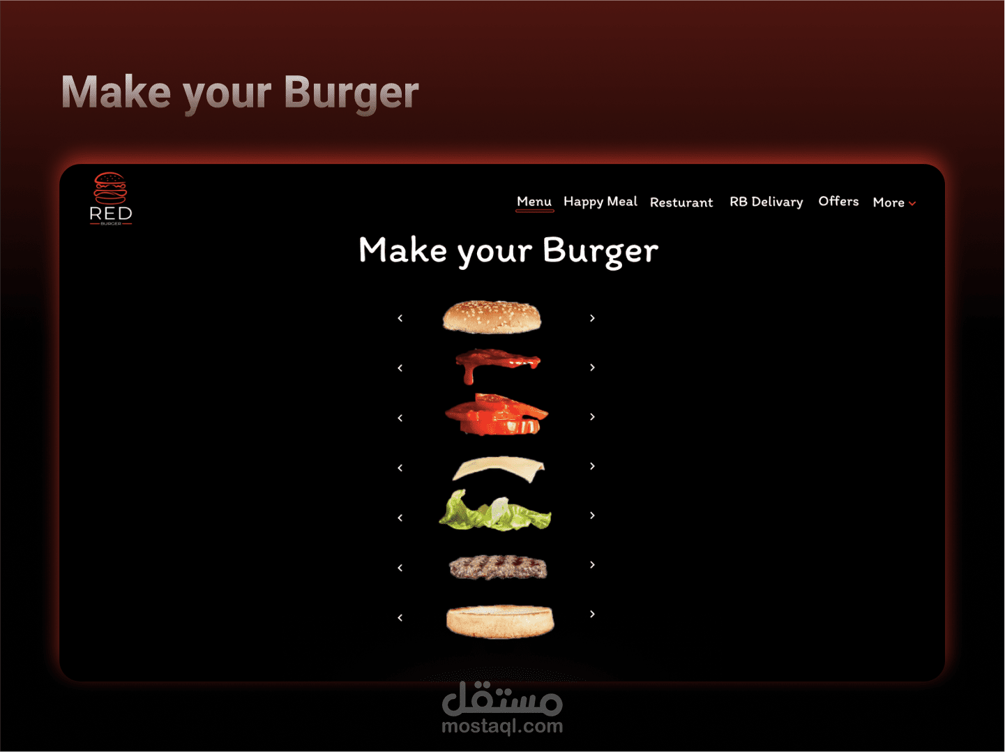 Red Burger "Website" - UX/UI Case Study It is an imaginary website and logo for a burger restaurant that provides you with many types of burgers, and there is another feature, which is to make the burger yourself.. I hope you like it ️