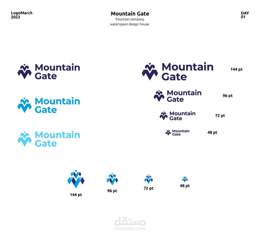 تصميم هوية بصرية لشركة مصنعة للنافورات تسمي mountain gate