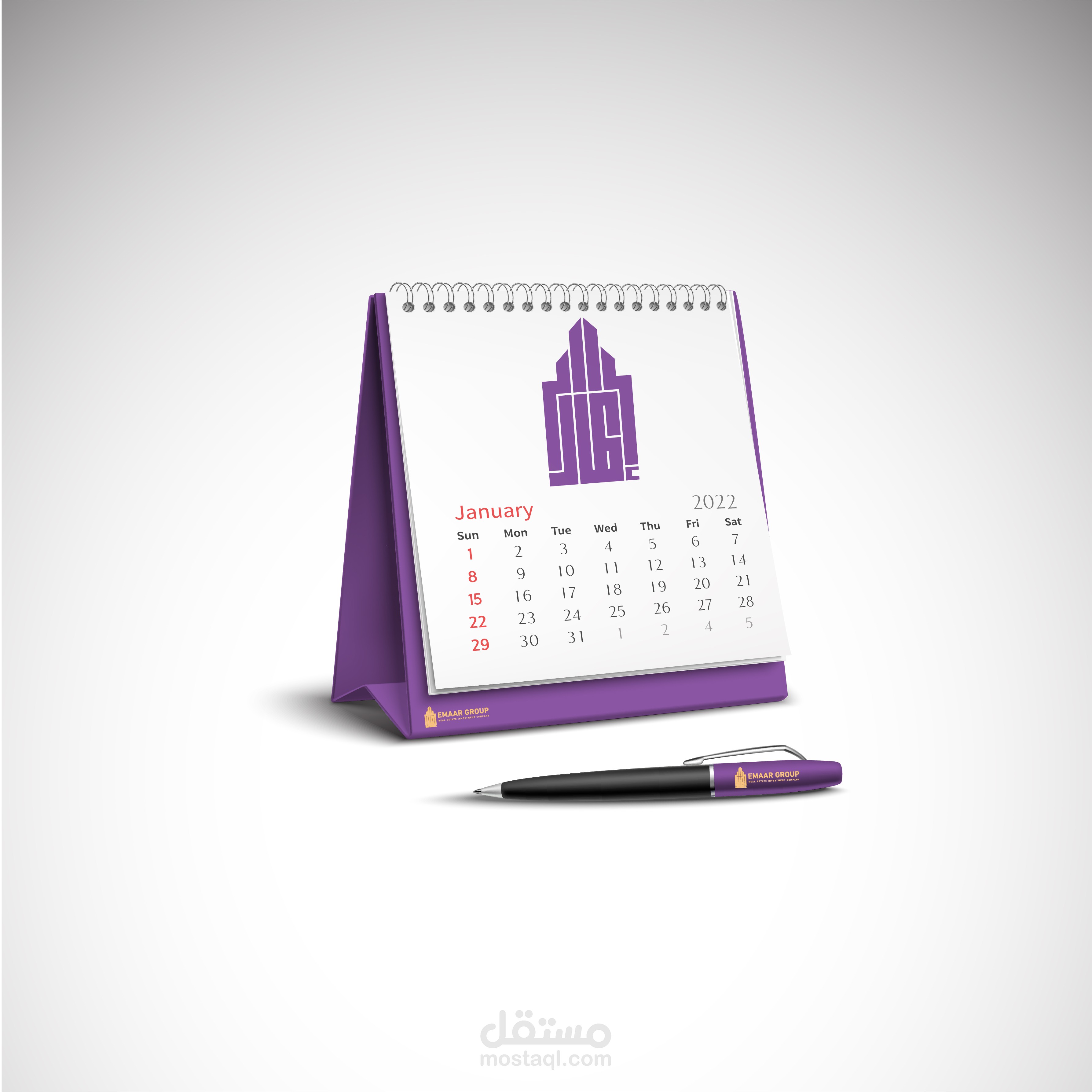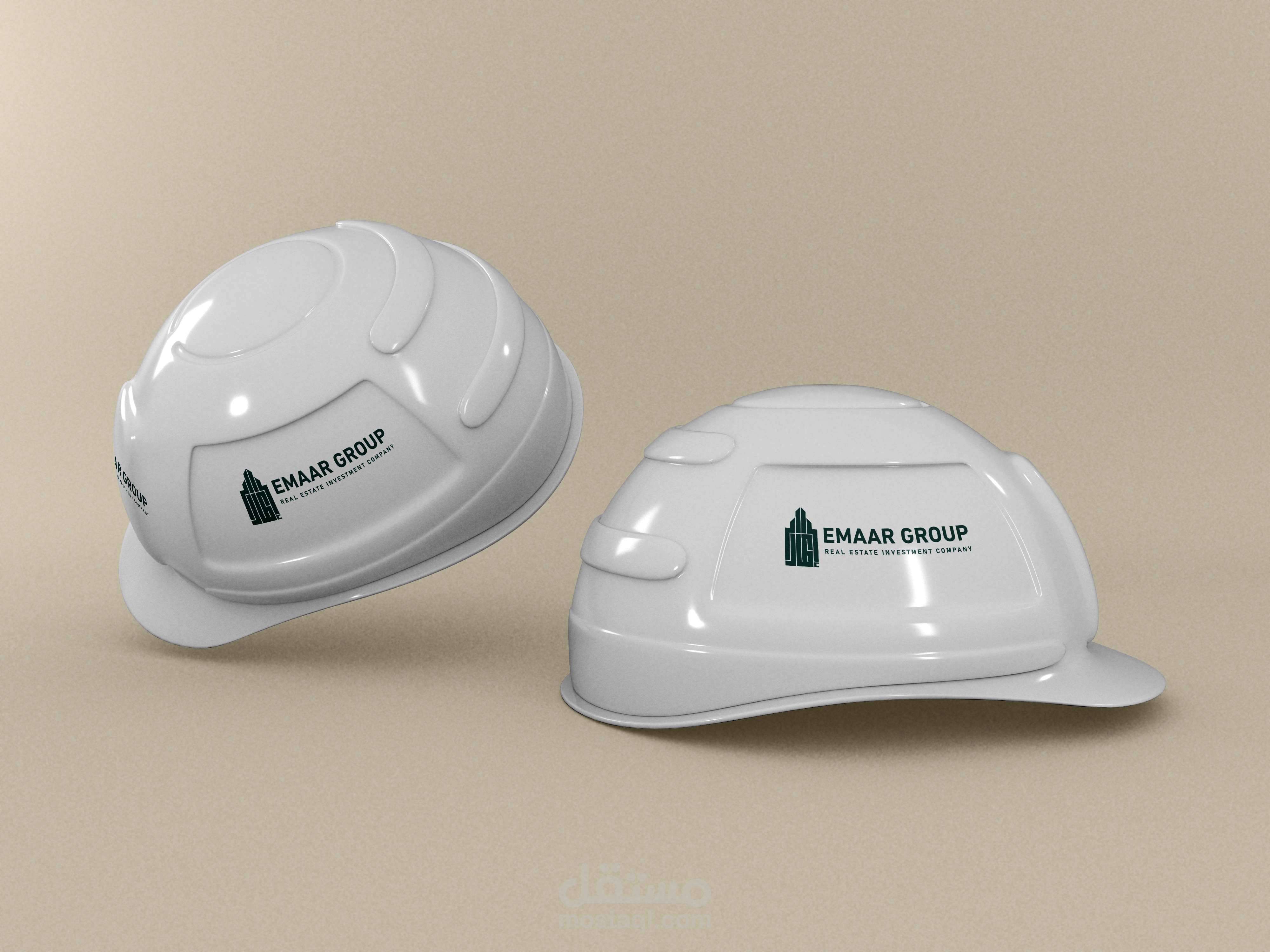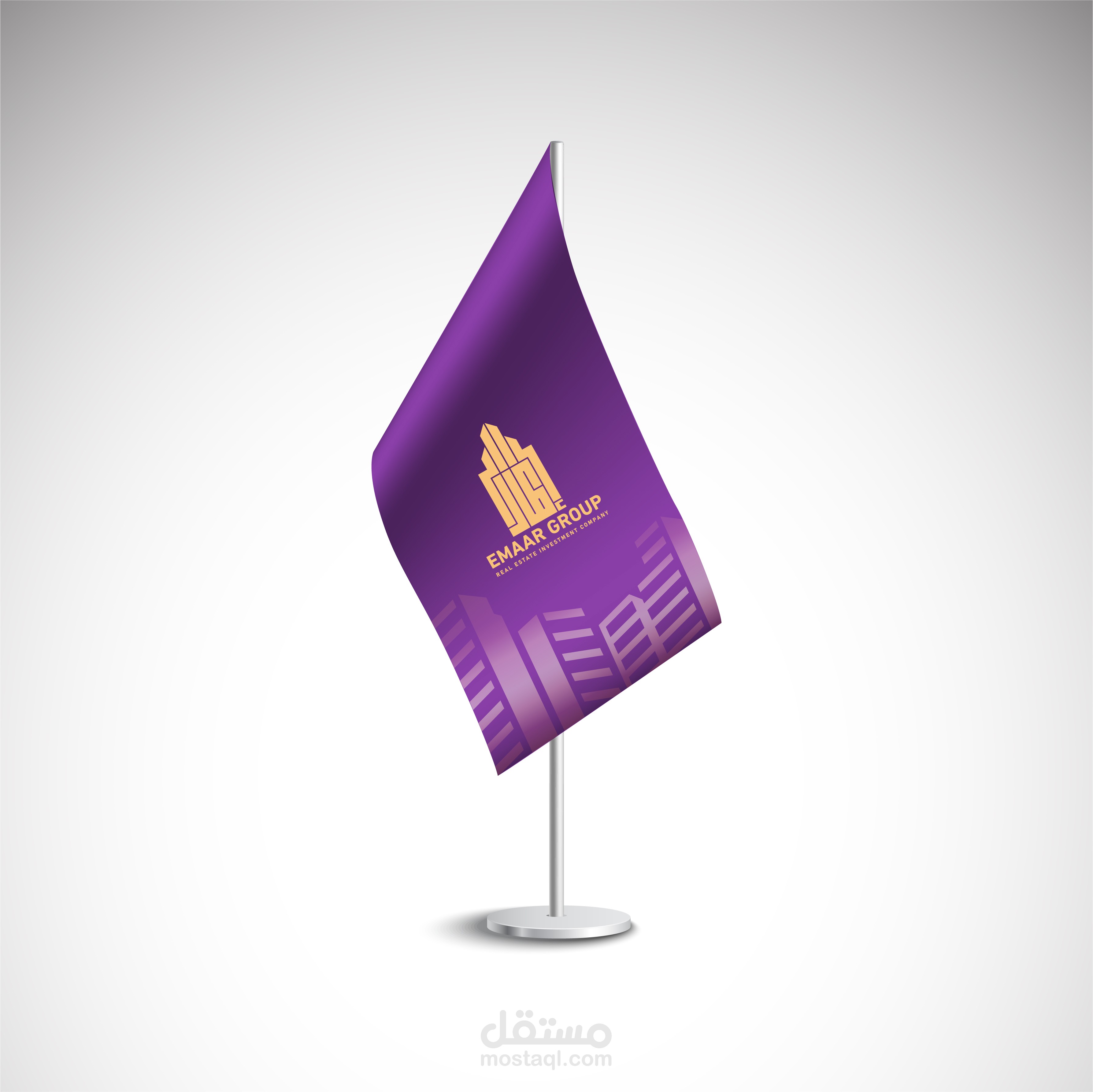 الشعار يشمل كلمة اعمار بطريقة الكوفي التربيعي , مع دمج شكل البناء وهو مايدل علي مجال الشركة