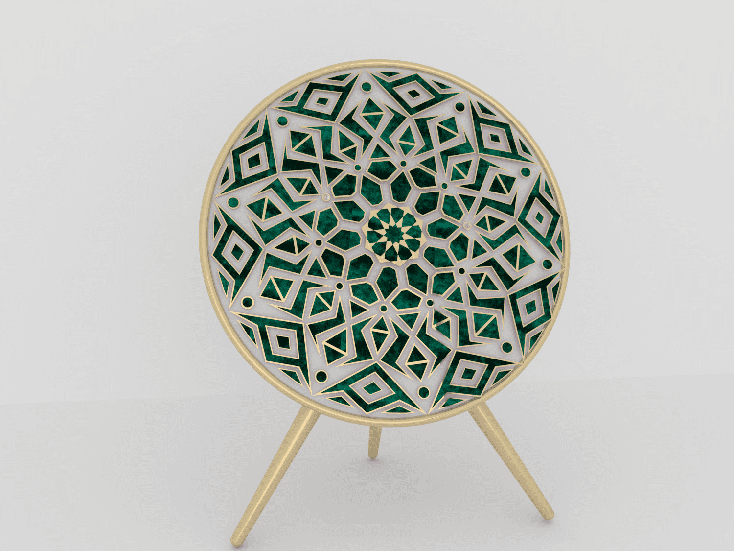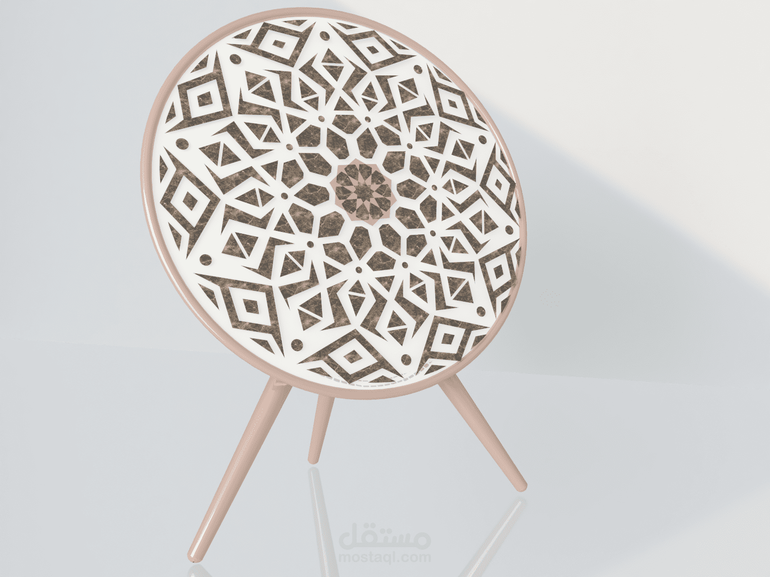 تصميمي لقطعة أثاث (مكبر-صوت) بدمج التراثين الشرقي مع الغربي واستخدام تقنية التطعيم بالزجاج الملون.. بناءا على طلب العميل