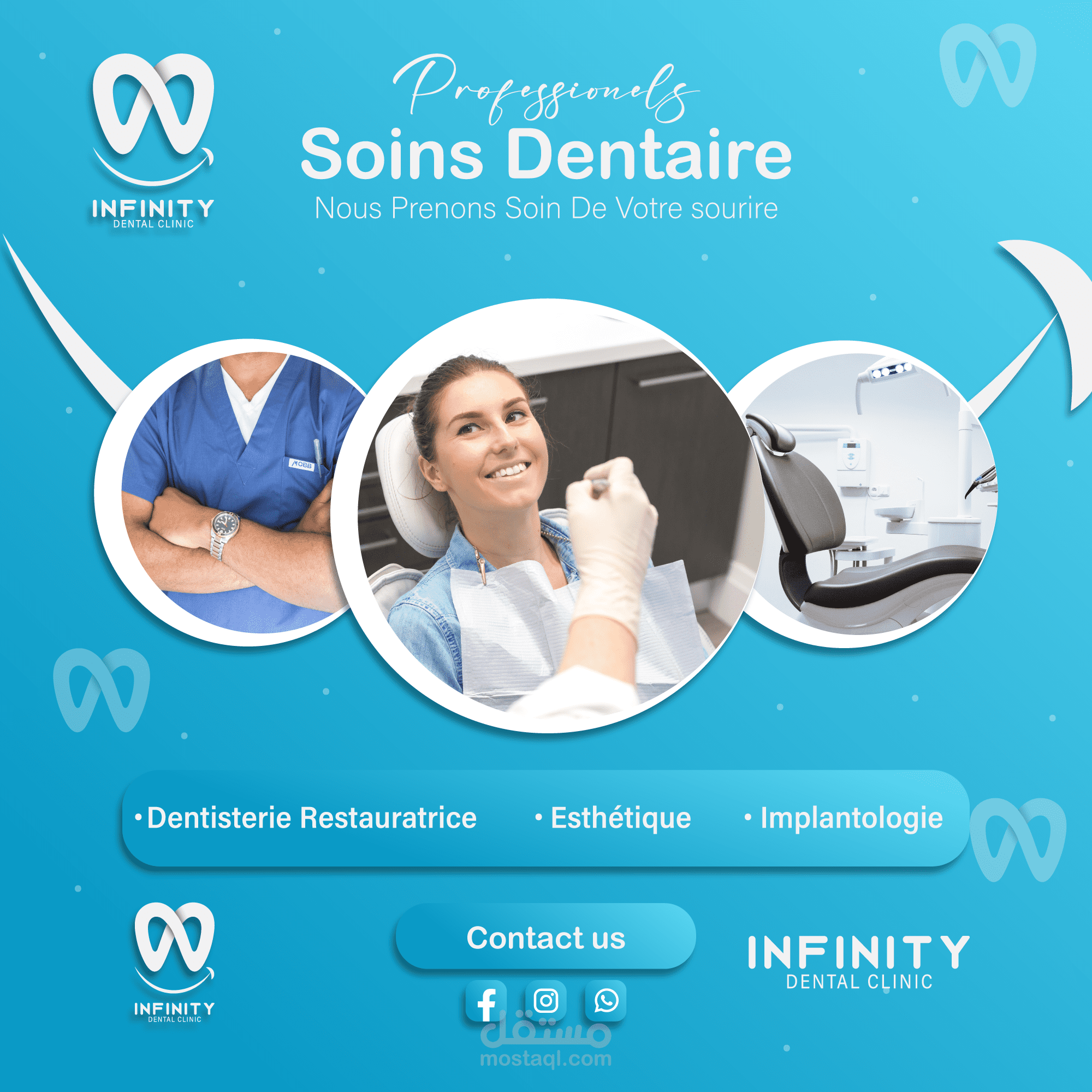 مرحبا بكم في عيادة إنفينيتي الأسنان، حيث نؤمن بأن ابتسامتكم هي أولويتنا. بصفتي مصمم جرافيك ، كانت لدي السعادة بإنشاء سلسلة من المنشورات على وسائل التواصل الاجتماعي لعيادة إنفينيتي الأسنان التي تسلط الضوء على الرعاية الطبية المتميزة والخدمة الشخصية التي تقدمها.