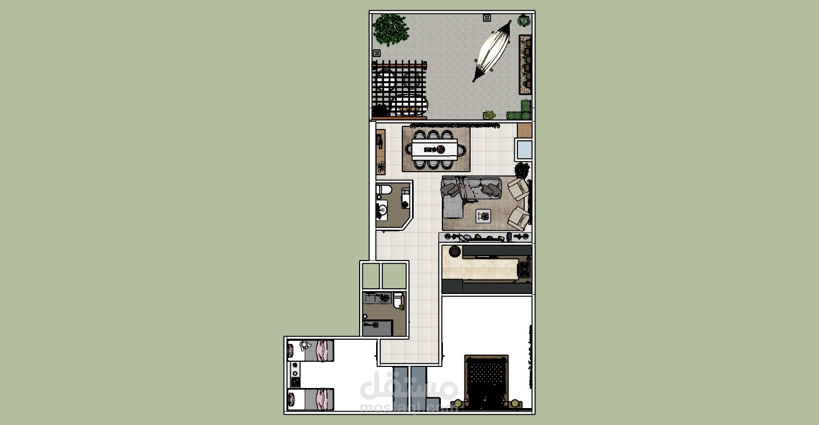 تصميم شقة 100 متر مربع 2D شامله الفرش و الخامات المستخدمة في الحوائط و الارضيات