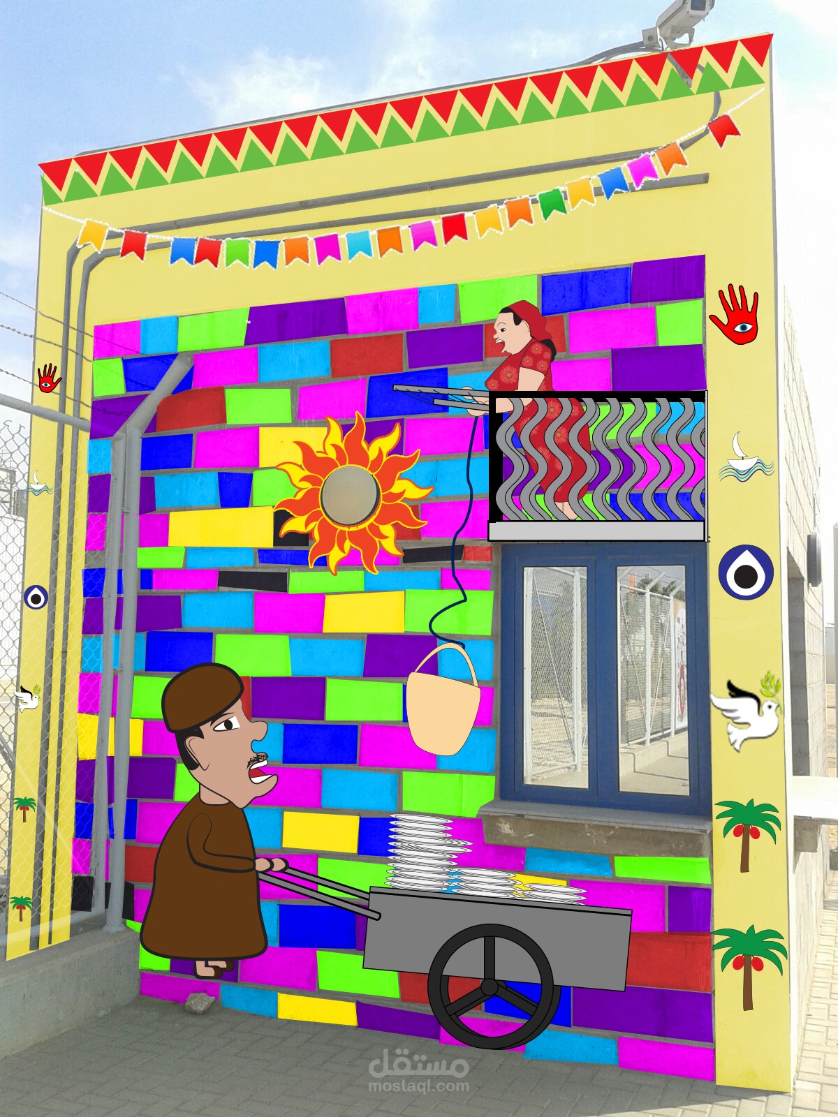 تحويل واجهة مبنى إلى فلكلور شعبي للباعة الجائلين لتعبر عن طبيعة المبنى أنه كانتين
